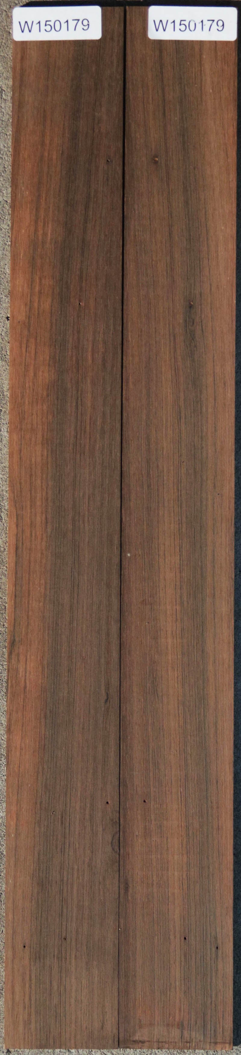 One of the rarest, most sought after Rosewoods in the World, Brazilian Rosewood is renowned for its acoustic properties and elegant, colorfully patterned grain. Brazilian Rosewood works and glues well turning to an ultra-smooth natural polish. This is very old material that is bone dry and ready for your creations. This piece could be used for sides or headplates. There are penetrating pinholes in both pieces. Must be able to work with the pinholes present.