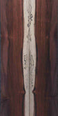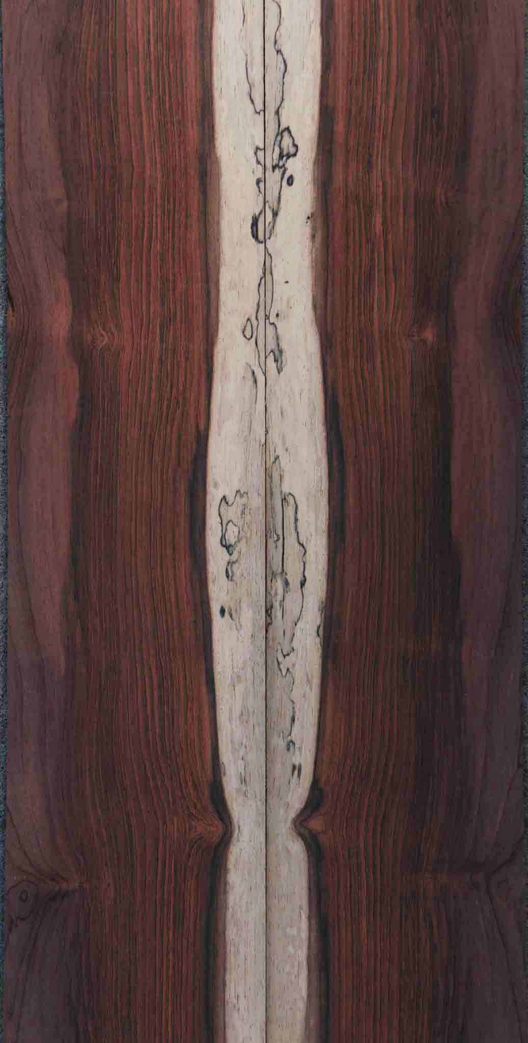 One of the rarest, most sought after Rosewoods in the World, Brazilian Rosewood is renowned for its acoustic properties and elegant, colorfully patterned grain. Brazilian Rosewood works and glues well, turning to an ultra-smooth natural polish. This is very old material that is bone dry and ready for your instruments. Please look at individual sets carefully as every set is unique and has unique characteristics. Small pin holes are present in some pieces and are considered normal for the species. A slight bow or twist may be present but will lay flat with minimal pressure. This wood ships to the USA only. It's solid spalted sapwood. This piece is B Grade and has a sound knot with checks on either side of the knot, so the purchaser must be able to work with that. Please see pictures for details. It is sold "as is". No Returns.