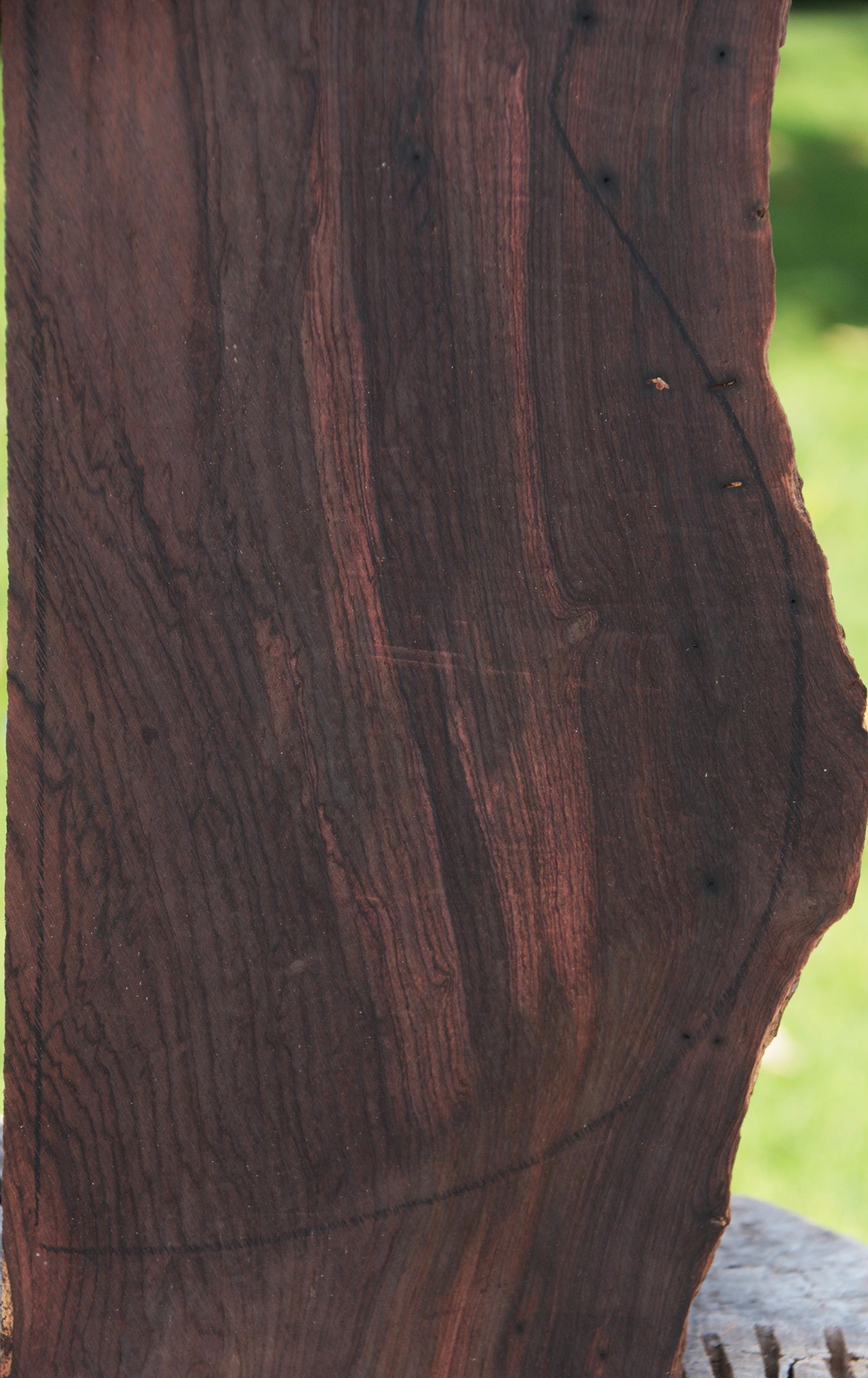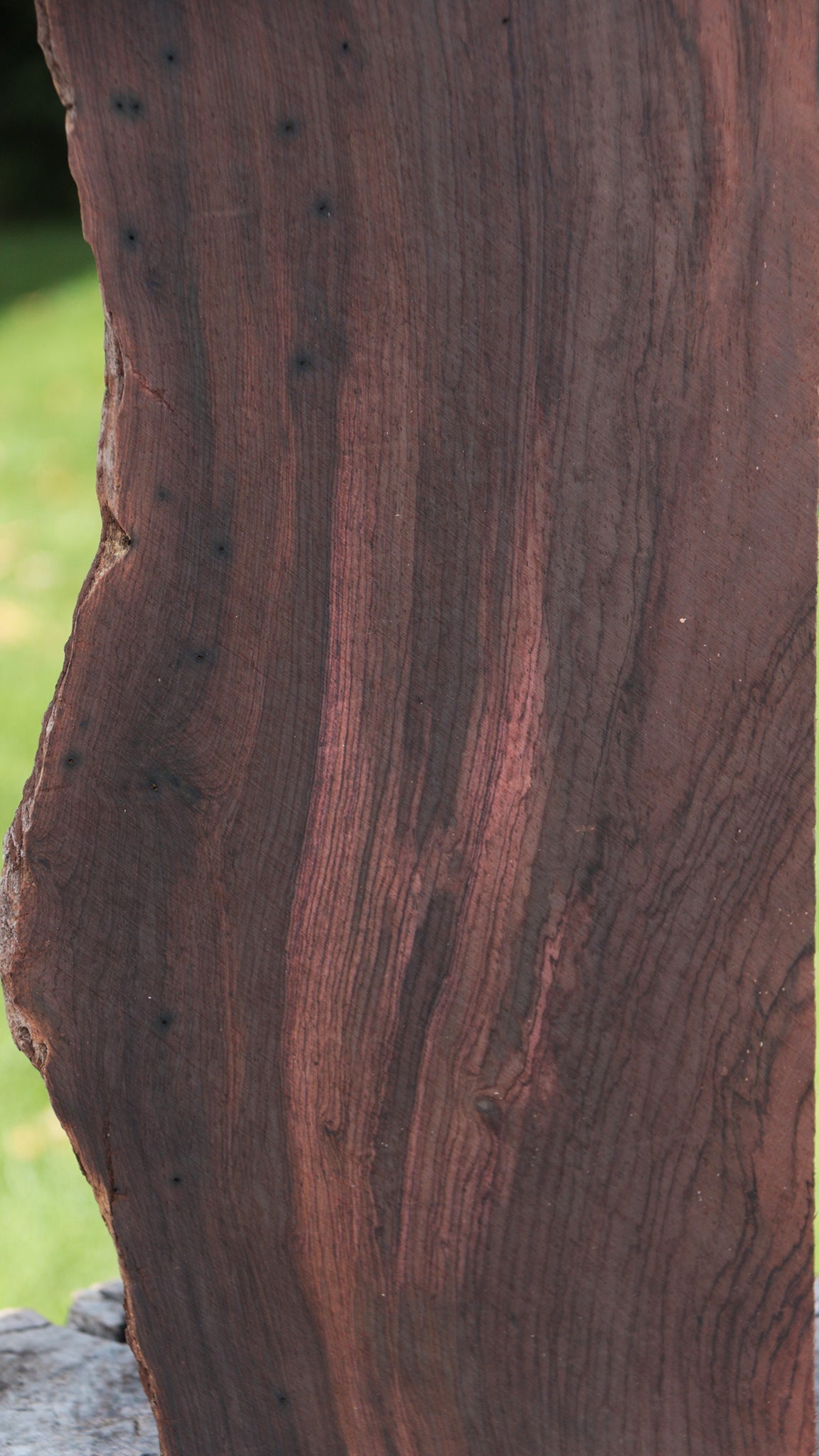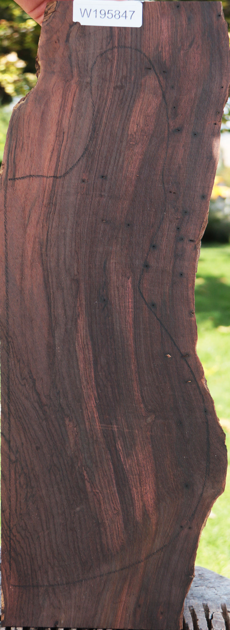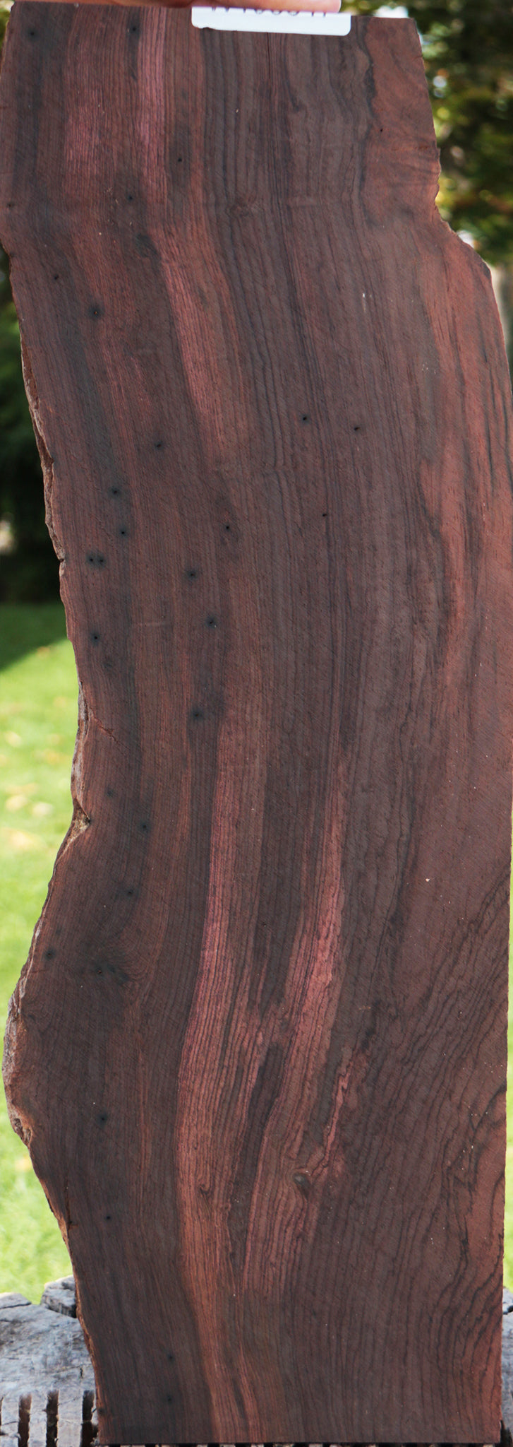 One of the rarest, most sought after Rosewoods in the World, Brazilian Rosewood is renowned for its acoustic properties and elegant, colorfully patterned grain. Brazilian Rosewood works and glues well, turning to an ultra-smooth natural polish. This is very old material that is bone dry and ready for your instruments. Please look at individual sets carefully as every set is unique and has unique characteristics. Small pin holes are present in some pieces and are considered normal for the species. A slight bow or twist may be present but will lay flat with minimal pressure. This wood ships to the USA only. This piece has numerous pin holes and has a 1/16" twist. (Les Paul Style)