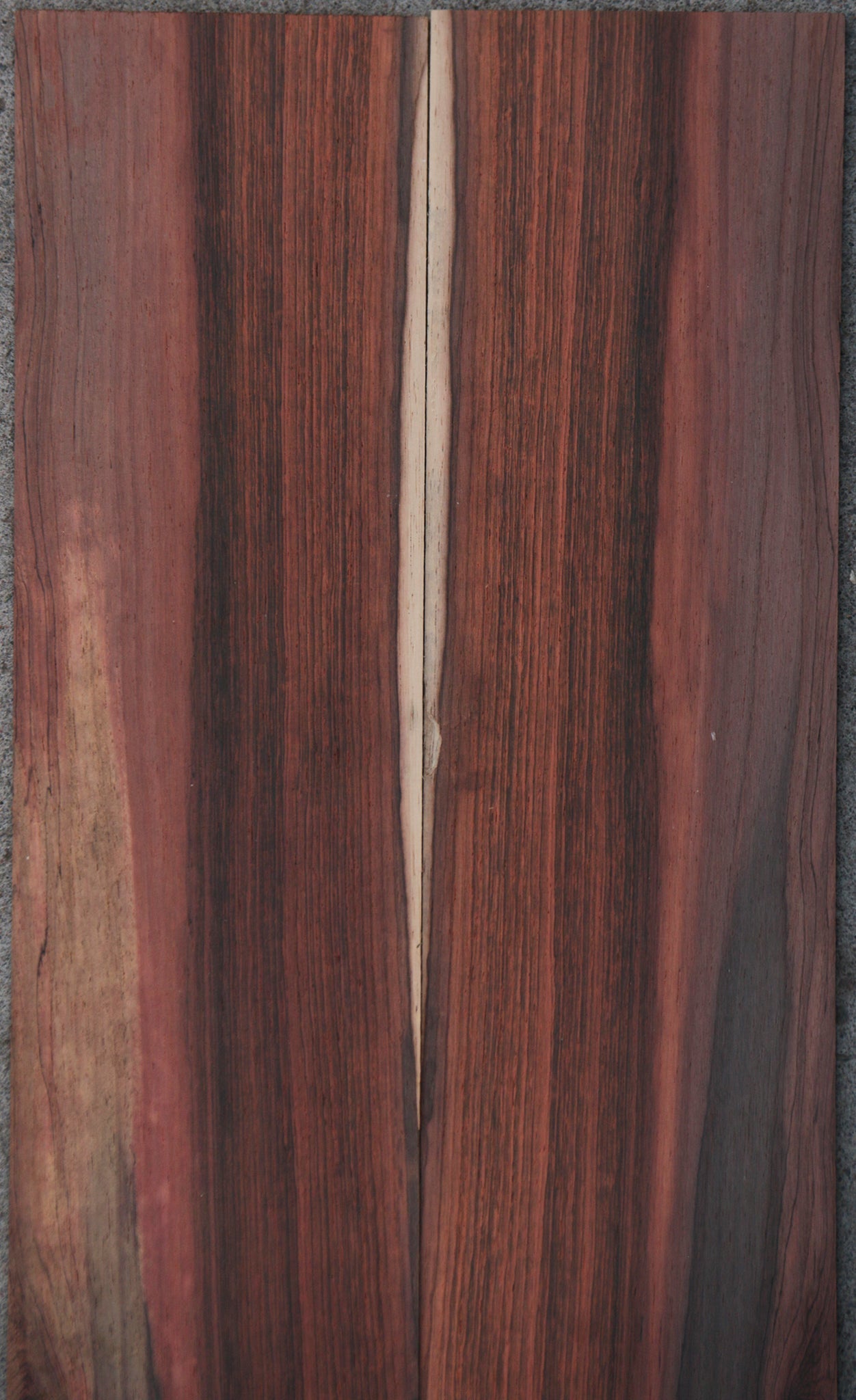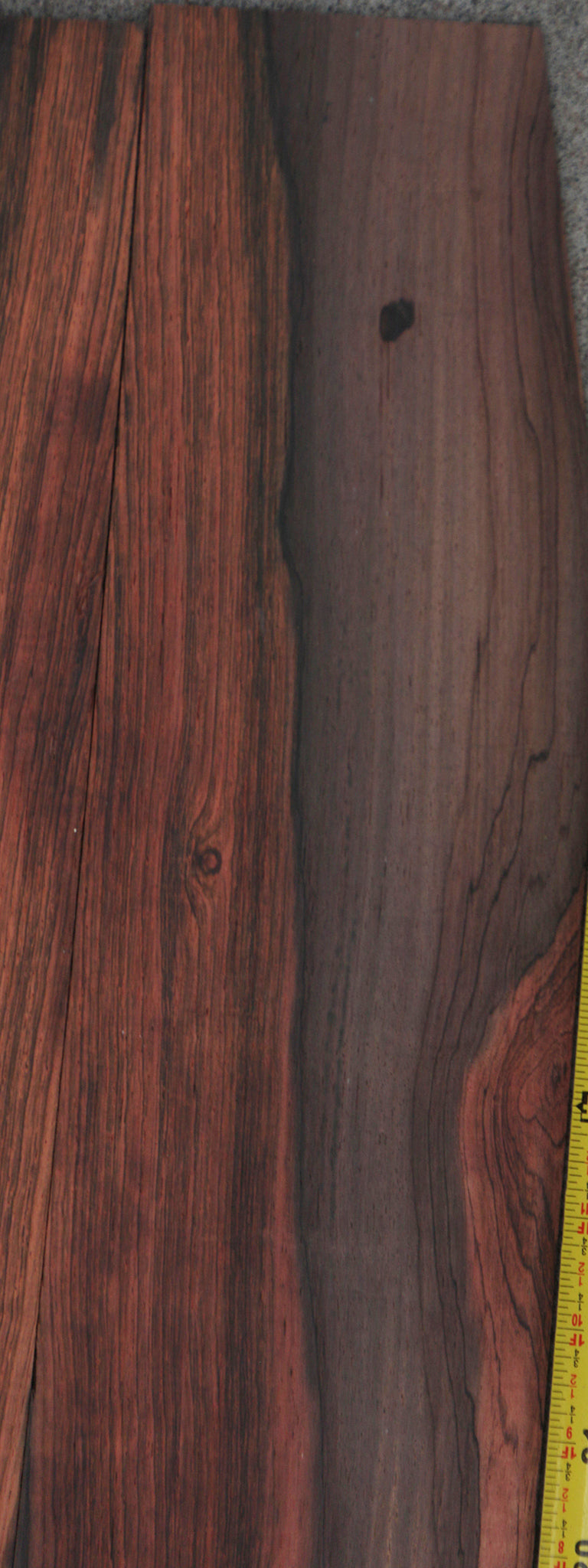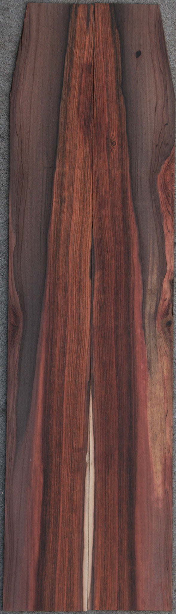One of the rarest, most sought after Rosewoods in the World, Brazilian Rosewood is renowned for its acoustic properties and elegant, colorfully patterned grain. Brazilian Rosewood works and glues well, turning to an ultra-smooth natural polish. This is very old material that is bone dry and ready for your instruments. Please look at individual sets carefully as every set is unique and has unique characteristics. Small pin holes are present in some pieces and are considered normal for the species. A slight bow or twist may be present but will lay flat with minimal pressure. This wood ships to the USA only. This piece has a couple pin holes that fall in the lower half of bout. This piece is classical size and does not fit Jumbo Guitar. See pictures for where the taper is.
