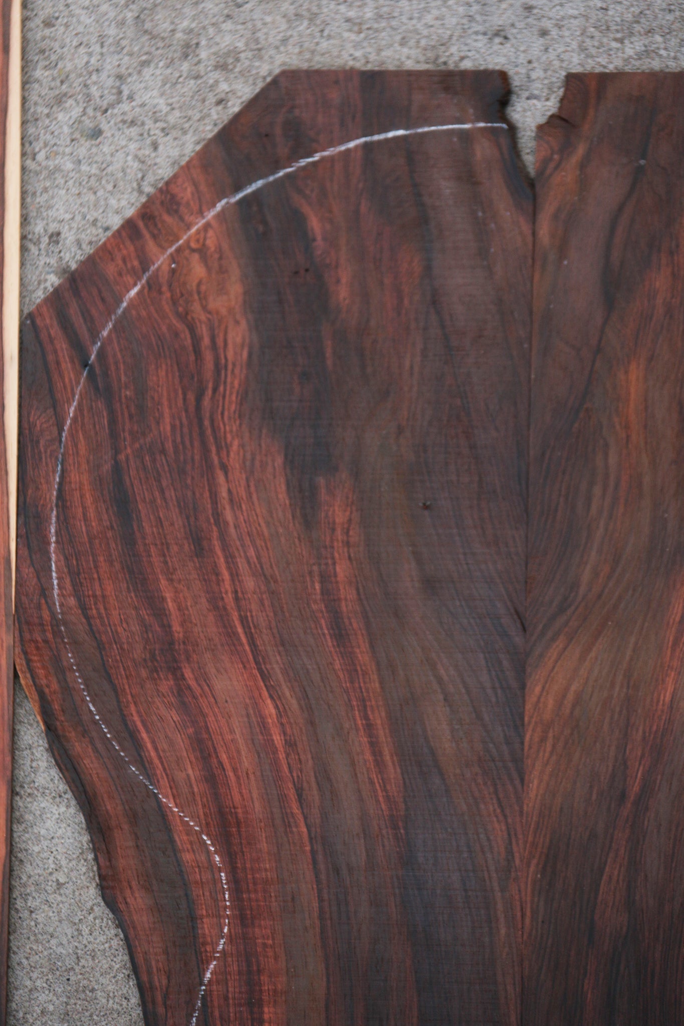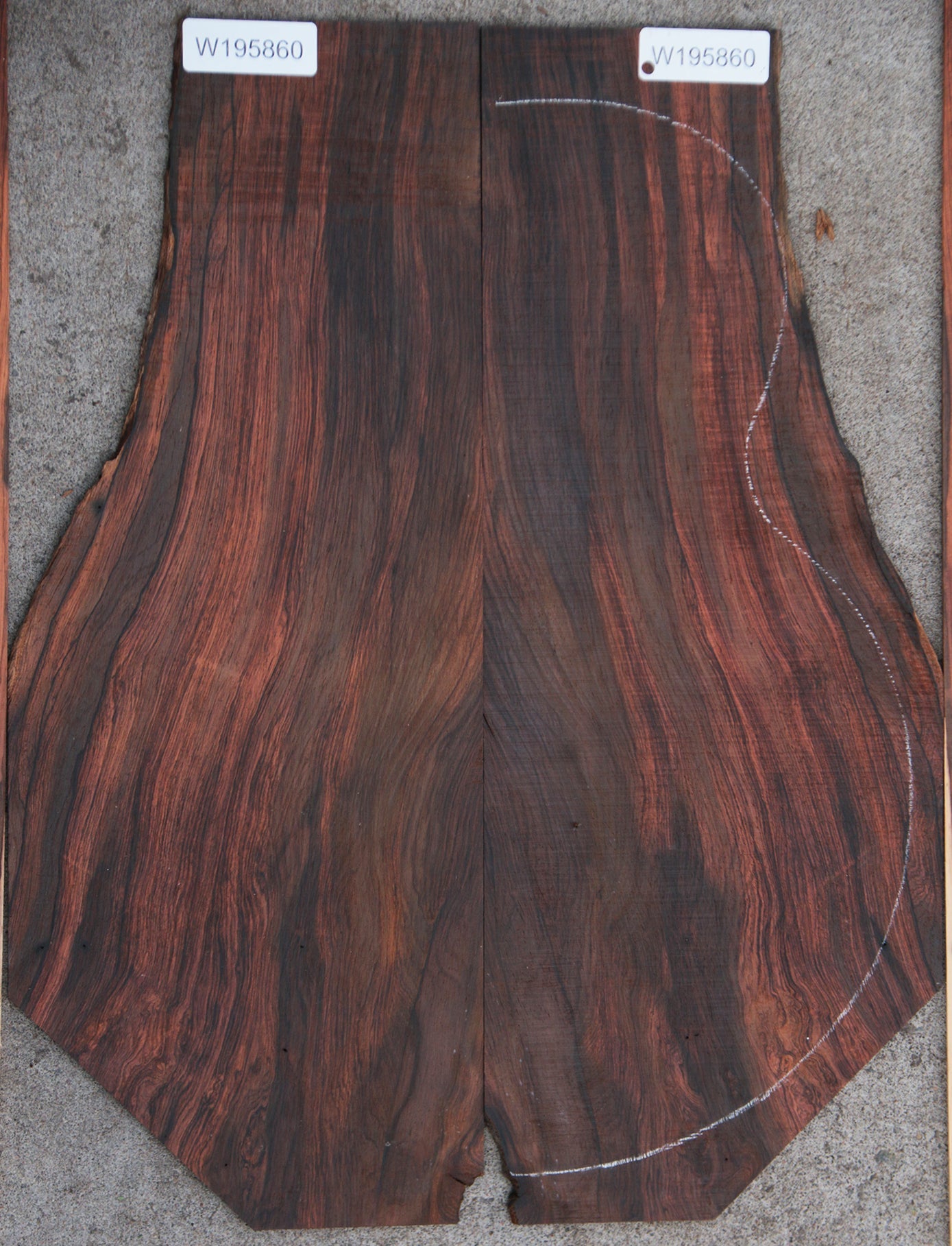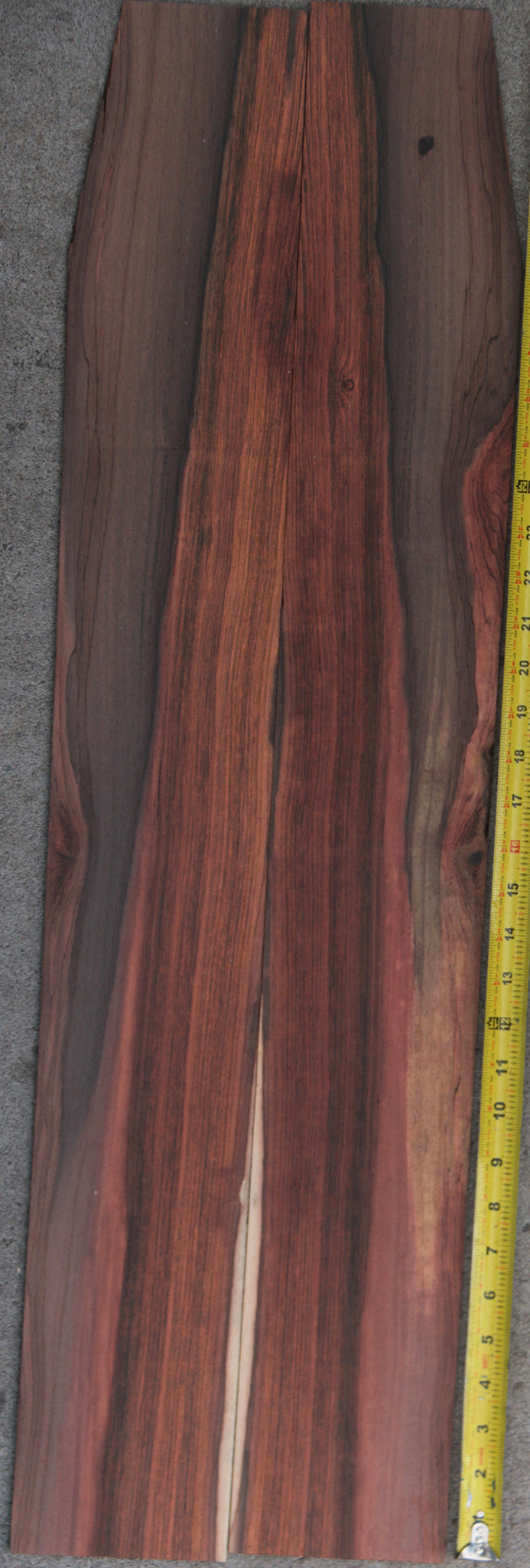 One of the rarest, most sought after Rosewoods in the World, Brazilian Rosewood is renowned for its acoustic properties and elegant, colorfully patterned grain. Brazilian Rosewood works and glues well, turning to an ultra-smooth natural polish. This is very old material that is bone dry and ready for your instruments. Please look at individual sets carefully as every set is unique and has unique characteristics. Small pin holes are present in some pieces and are considered normal for the species. A slight bow or twist may be present but will lay flat with minimal pressure. This wood ships to the USA only. This piece has a couple pin holes that fall in the lower half of bout. This piece is classical size and does not fit Jumbo Guitar. See pictures for where the taper is.