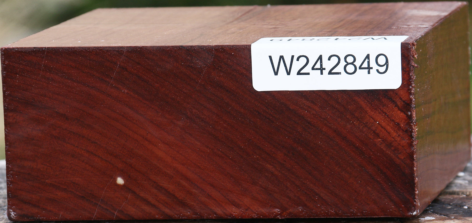 This Bubinga has a range of beautiful chatoyance, violet streaks and rich burgundy color. Suitable for high end turning projects, this kiln dried turning blank is perfect for bowls and many other uses like knives and pistol grips. The ends of the wood may be wax sealed. A minor end or surface check may be present. Size may vary +/- 1/8". Bubinga ships to the USA only. A lovely, high polish is easily attainable in this special exotic species. This piece has edge splits. Please see pictures for details.