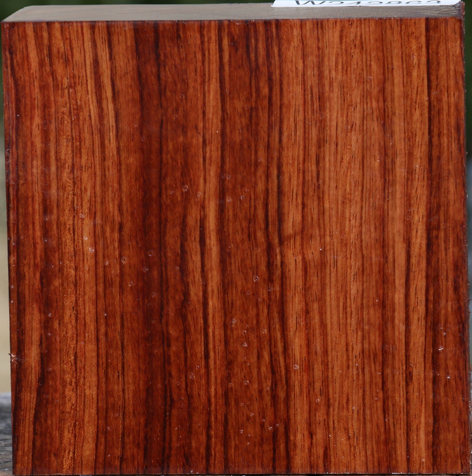 This Bubinga has a range of beautiful chatoyance, violet streaks and rich burgundy color. Suitable for high end turning projects, this kiln dried turning blank is perfect for bowls and many other uses like knives and pistol grips. The ends of the wood may be wax sealed. A minor end or surface check may be present. Size may vary +/- 1/8". Bubinga ships to the USA only. A lovely, high polish is easily attainable in this special exotic species.