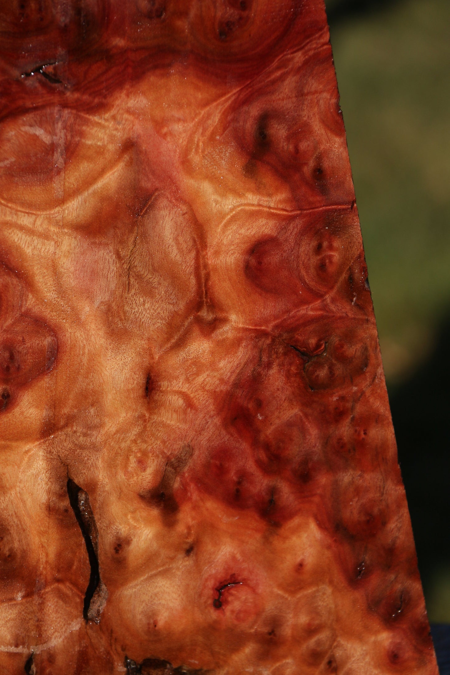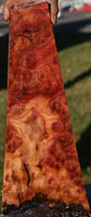 This gorgeous exotic Camphor Burl wood was cut from several large, high quality burls. It has air dried for 4 years and has been wax sealed either fully or just on the ends. There is a slight amount of residual moisture as of December 2024, but the wood is nearly dry. Checks and inclusions may be present. A slight bow or twist may be present. Since Camphor Burl is aromatic, any cut offs you generate from your woodworking projects can be stored in an open box to freshen up the air in your shop! This piece has checks, inclusions, splits, and bug holes. Please see pictures for details.