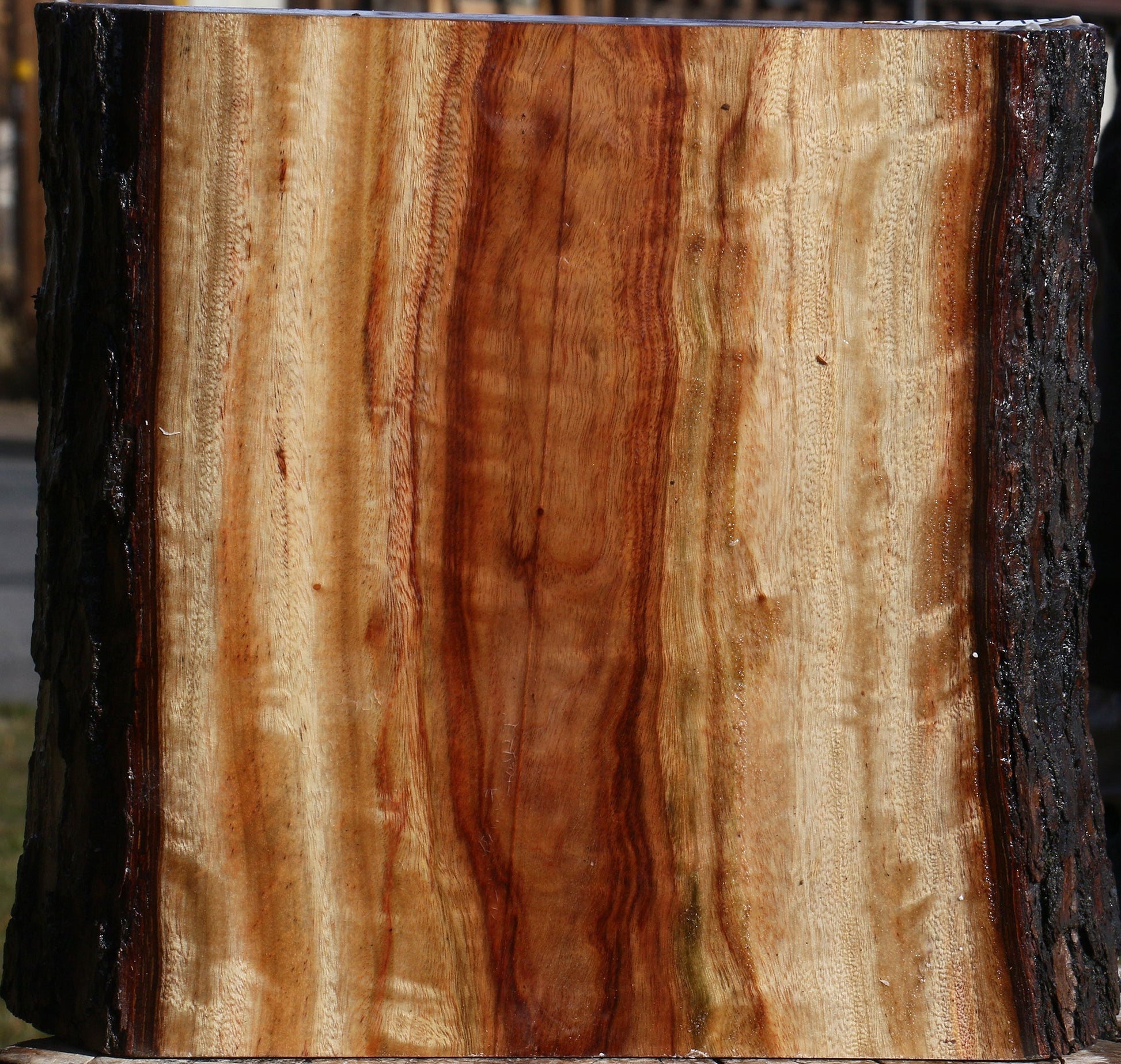 This gorgeous Camphor wood was cut from several large, high quality logs. Freshly cut and wax sealed in November of 2025, this species dries with little degrade but should be twice turned for best results. Since the wood is aromatic, your sawdust can be stored in an open box to freshen the air in your shop! Try making a beautiful bowl or turned article with this lovely hardwood. A minor check or natural edge may be present. This piece has inclusions. Please see pictures for details.