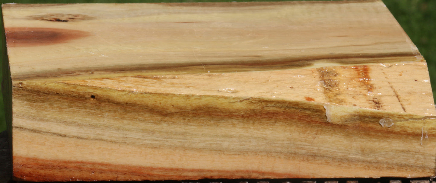 This is a colorful batch of Carob, replete with all of the easy woodworking characteristics you love when turning, including a high, smooth polish, easy workability, and easy sanding. The wood was freshly cut in August of 2024 and wax sealed. An occasional check or rough corner edge may be present. Perfect for woodturning projects, take advantage of this first-time offer of sensational Carob wood! This piece has inclusions, worm holes, soft spalt, and a partial rough edge. Please see pictures for details.