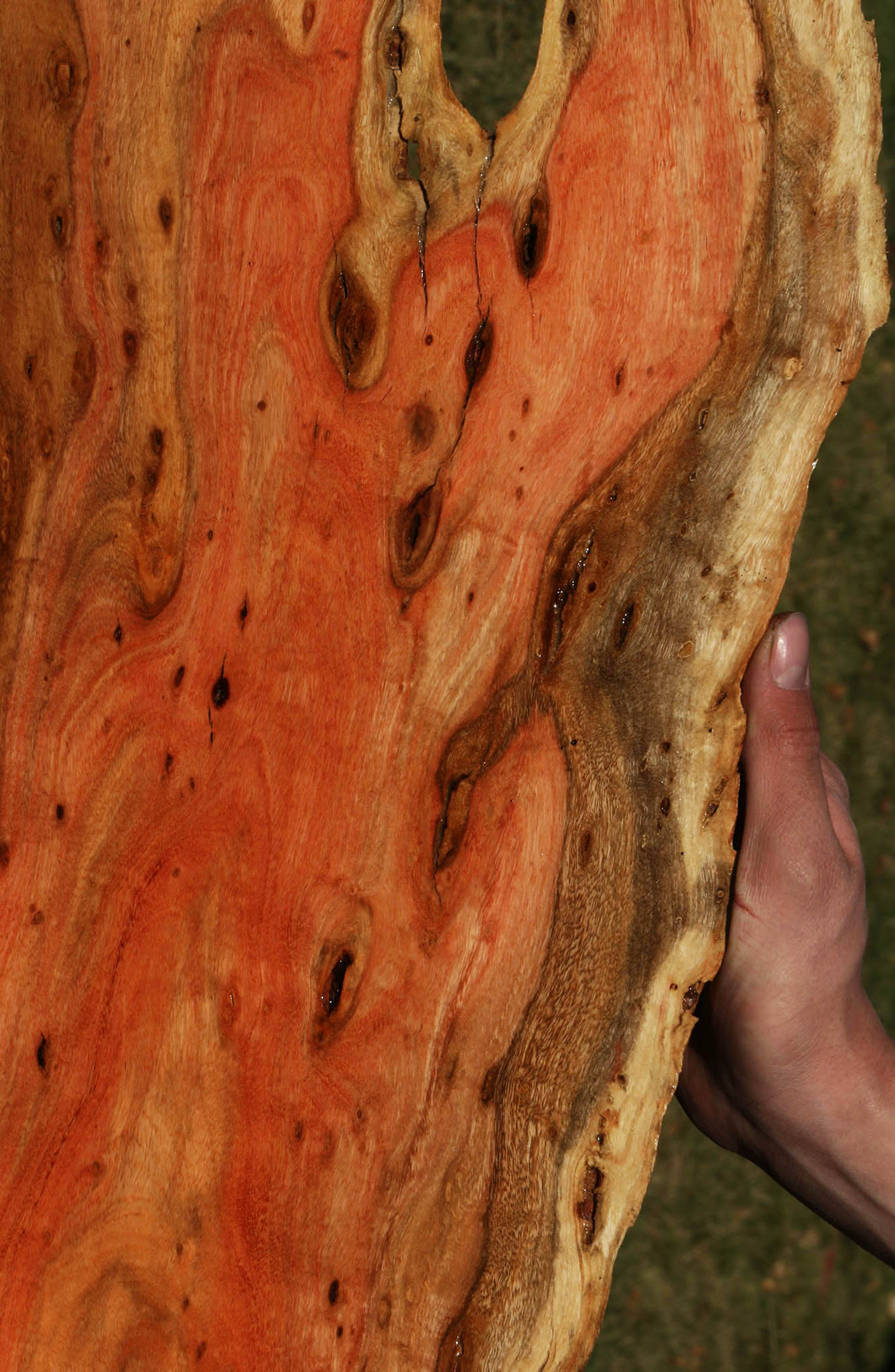 This is a colorful batch of Carob, replete with all of the easy woodworking characteristics you love when working with wood, including a high, smooth polish, easy workability, and easy sanding. The wood was cut in August of 2024. It is surfaced on two sides, kiln dried, and ready to use. An occasional check, live edge, or rough corner edge may be present. Take advantage of this first-time lumber offer of sensational Carob wood! This piece has voids, checks, splits, and inclusions. Please see pictures for details.
