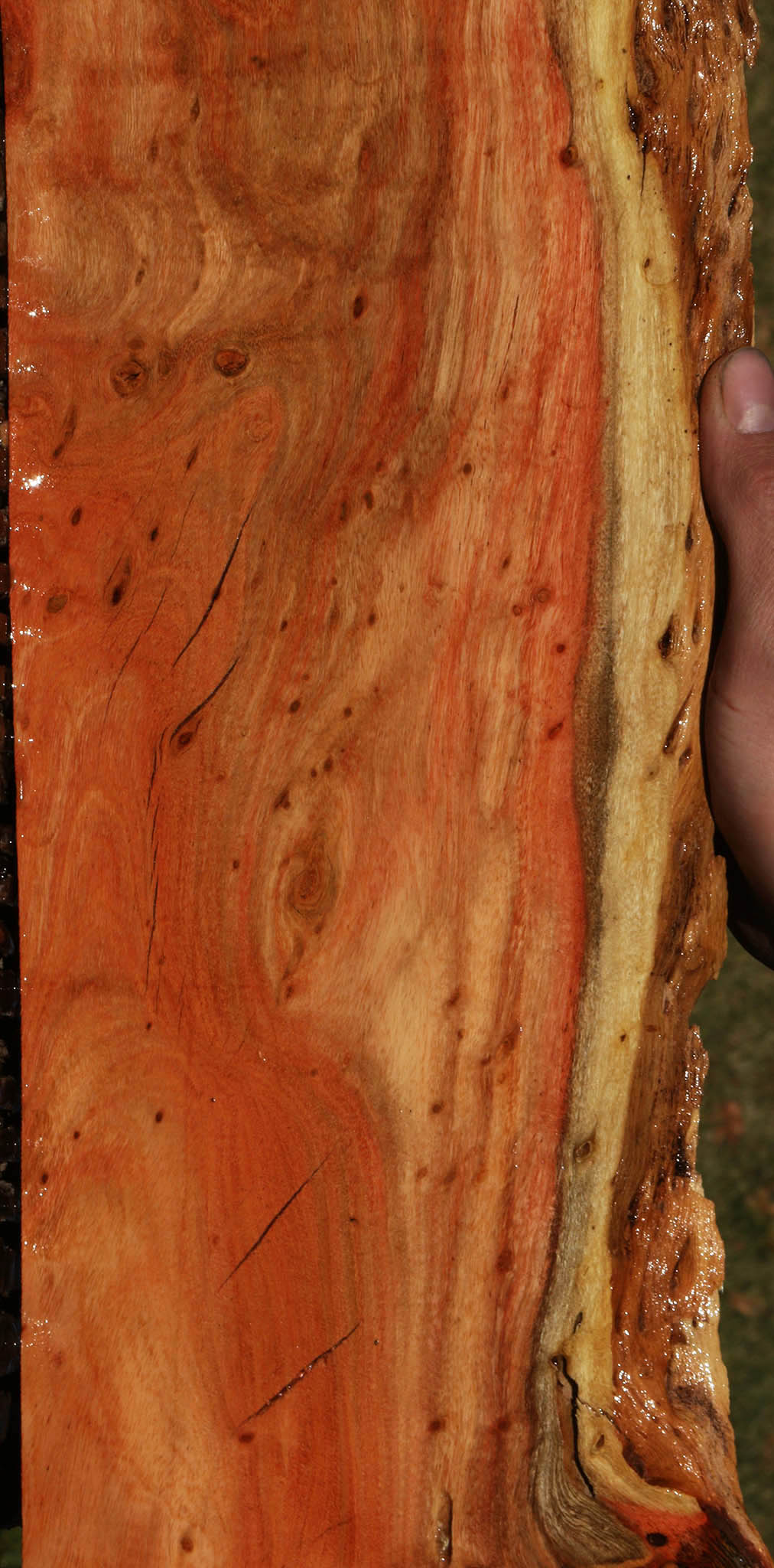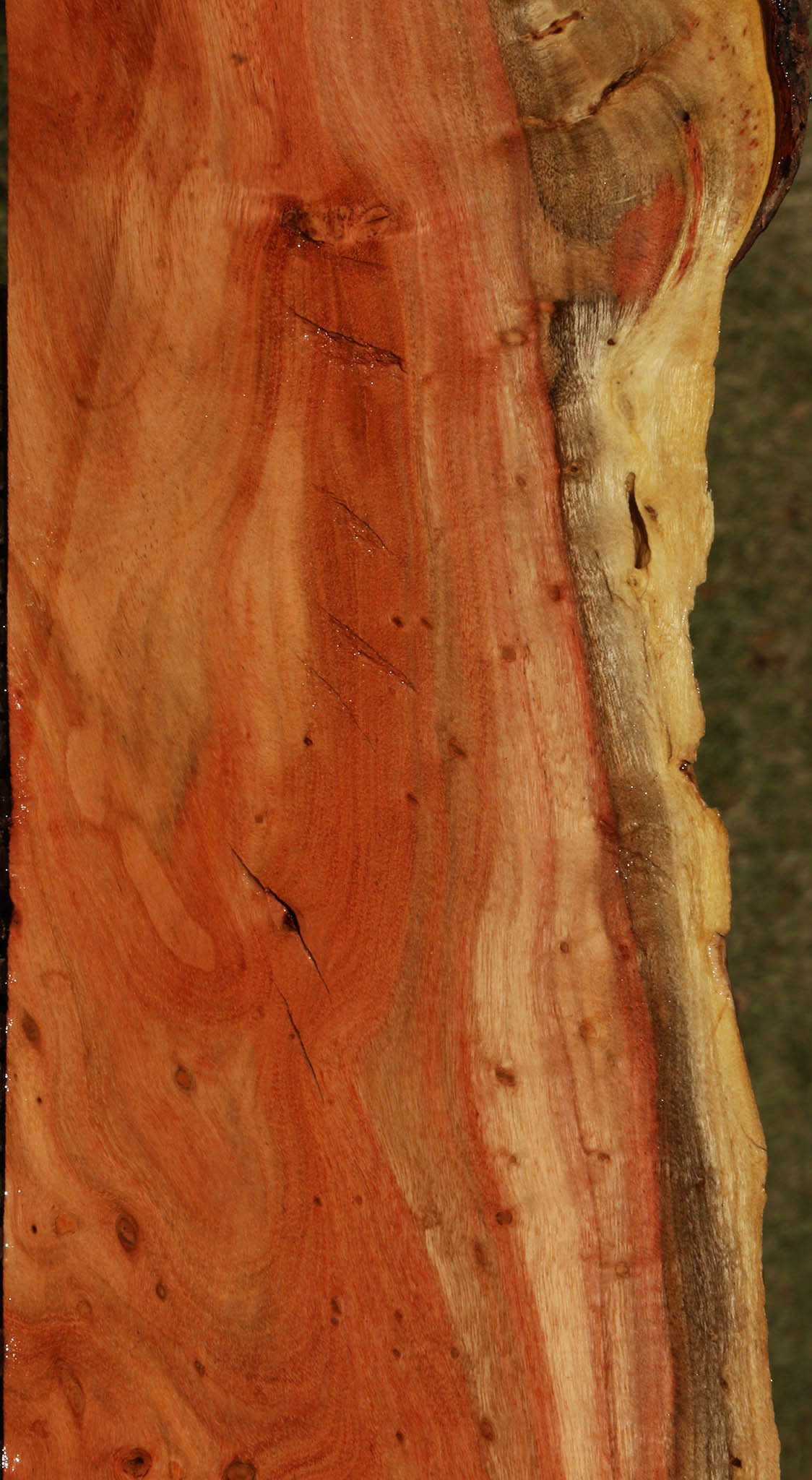 This is a colorful batch of Carob, replete with all of the easy woodworking characteristics you love when working with wood, including a high, smooth polish, easy workability, and easy sanding. The wood was cut in August of 2024. It is surfaced on two sides, kiln dried, and ready to use. An occasional check, live edge, or rough corner edge may be present. Take advantage of this first-time lumber offer of sensational Carob wood! This piece has checks, inclusions, and splits. Please see pictures for details.