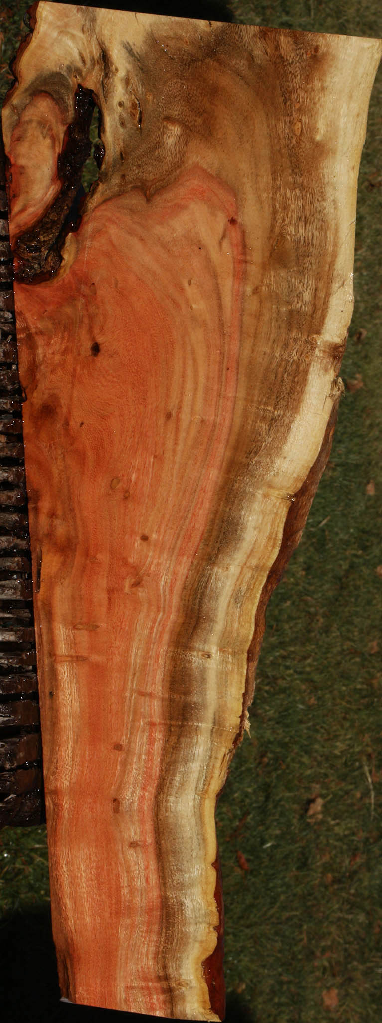 This is a colorful batch of Carob, replete with all of the easy woodworking characteristics you love when working with wood, including a high, smooth polish, easy workability, and easy sanding. The wood was cut in August of 2024. It is surfaced on two sides, kiln dried, and ready to use. An occasional check, live edge, or rough corner edge may be present. Take advantage of this first-time lumber offer of sensational Carob wood! This piece has splits, checks, bug holes, inclusions, and voids. Please see pictures for details.