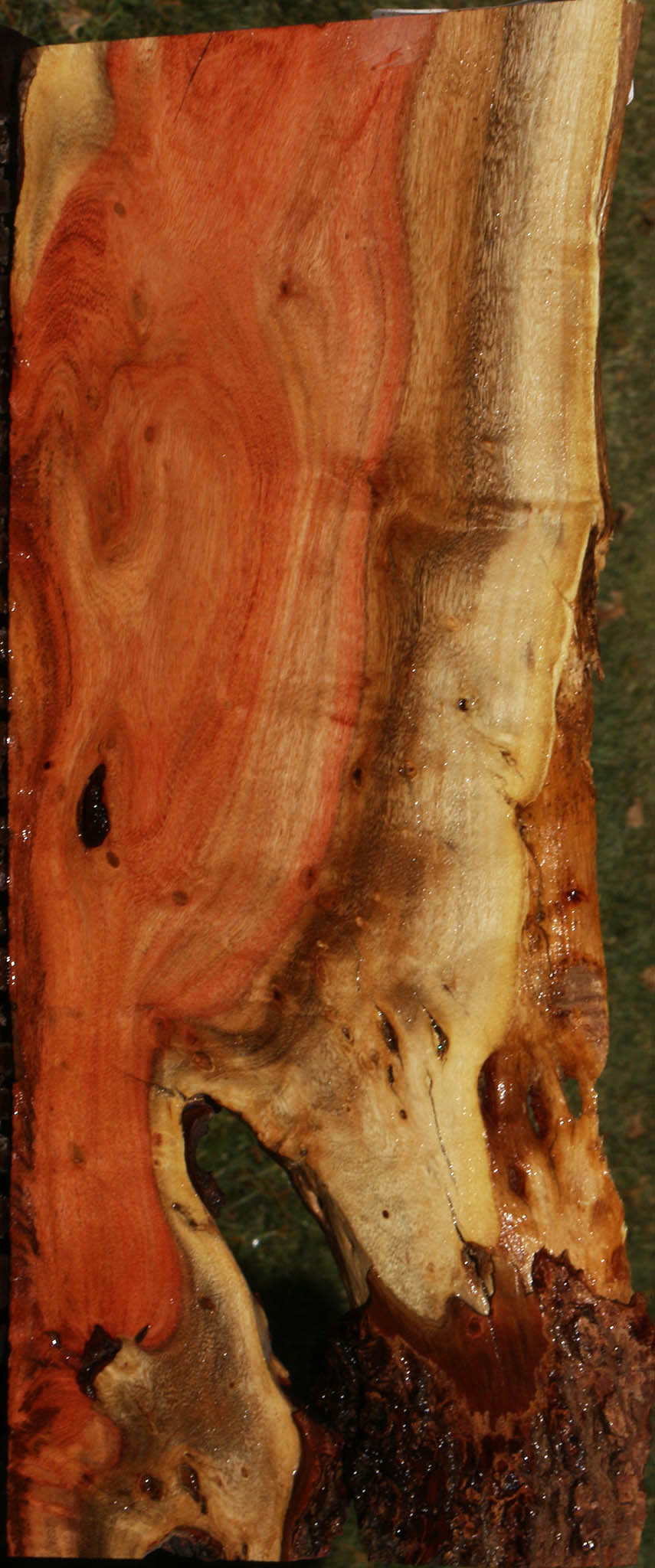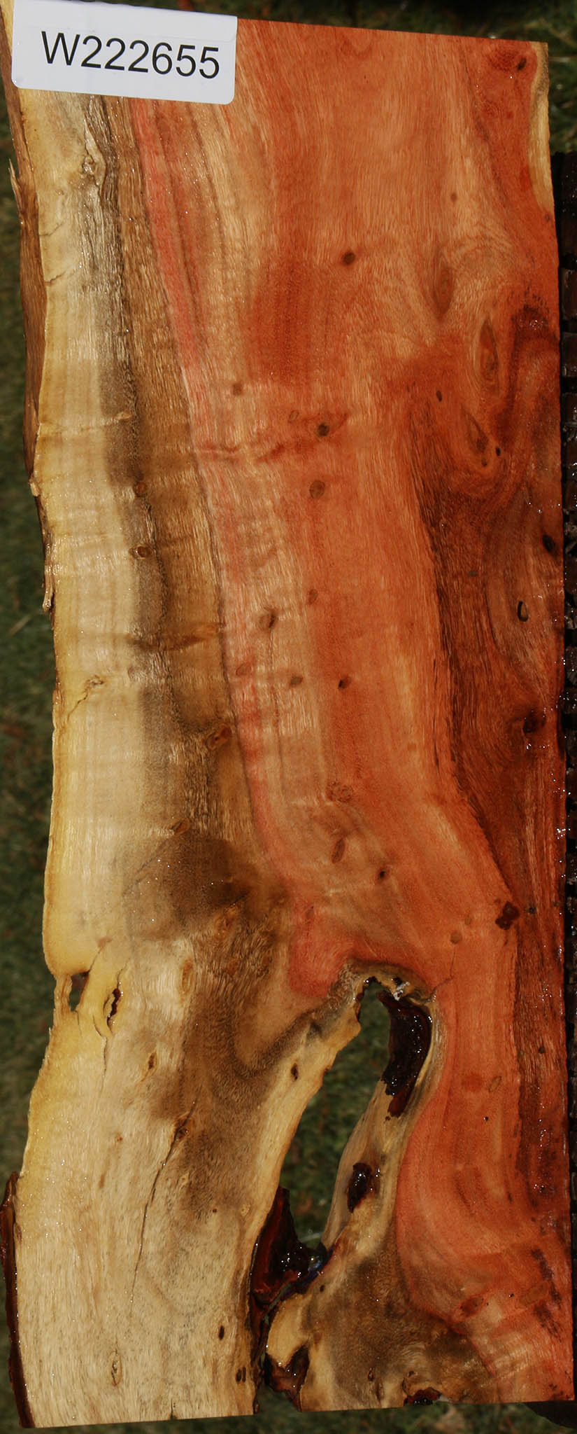 This is a colorful batch of Carob, replete with all of the easy woodworking characteristics you love when working with wood, including a high, smooth polish, easy workability, and easy sanding. The wood was cut in August of 2024. It is surfaced on two sides, kiln dried, and ready to use. An occasional check, live edge, or rough corner edge may be present. Take advantage of this first-time lumber offer of sensational Carob wood! This piece has checks, inclusions, splits, voids, and bug holes. Please see pictures for details.