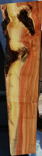 This is a colorful batch of Carob, replete with all of the easy woodworking characteristics you love when working with wood, including a high, smooth polish, easy workability, and easy sanding. The wood was cut in August of 2024. It is surfaced on two sides, kiln dried, and ready to use. An occasional check, live edge, soft spalted area, or rough corner edge may be present. Boards over 24" may have 1/16" to 1/8" bow or twist. Take advantage of this first-time lumber offer of sensational Carob wood! This piece has a partial live edge, checks, and inclusions. Please see pictures for details.