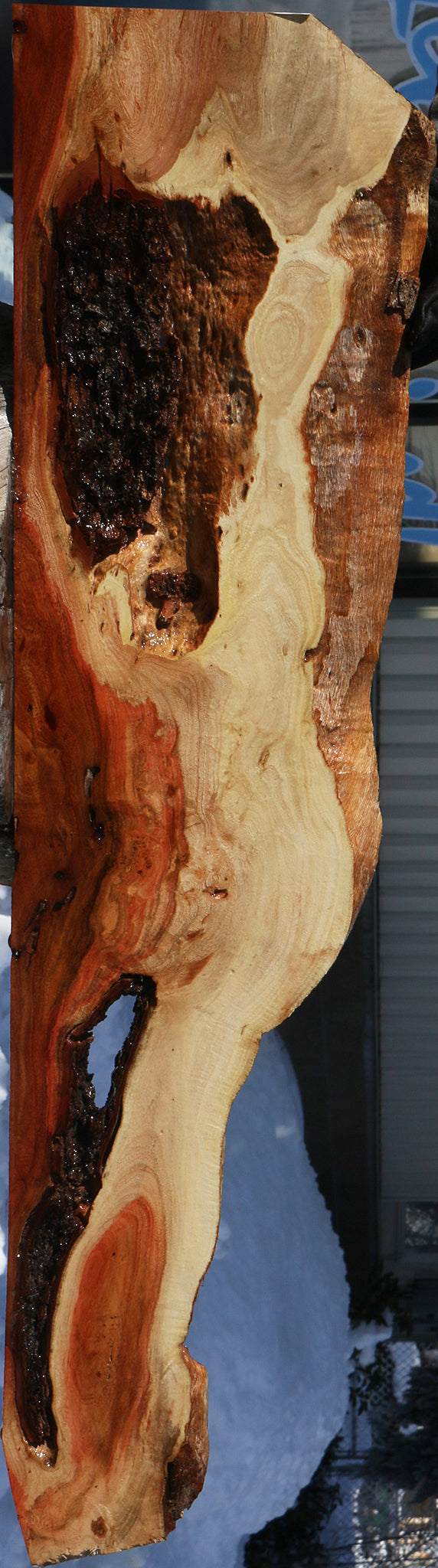 This is a colorful batch of Carob, replete with all of the easy woodworking characteristics you love when working with wood, including a high, smooth polish, easy workability, and easy sanding. The wood was cut in August of 2024. It is surfaced on two sides, kiln dried, and ready to use. An occasional check, live edge, soft spalted area, or rough corner edge may be present. Boards over 24" may have 1/16" to 1/8" bow or twist. Take advantage of this first-time lumber offer of sensational Carob wood! This piece has checks, voids, and inclusions. Please see pictures for details.