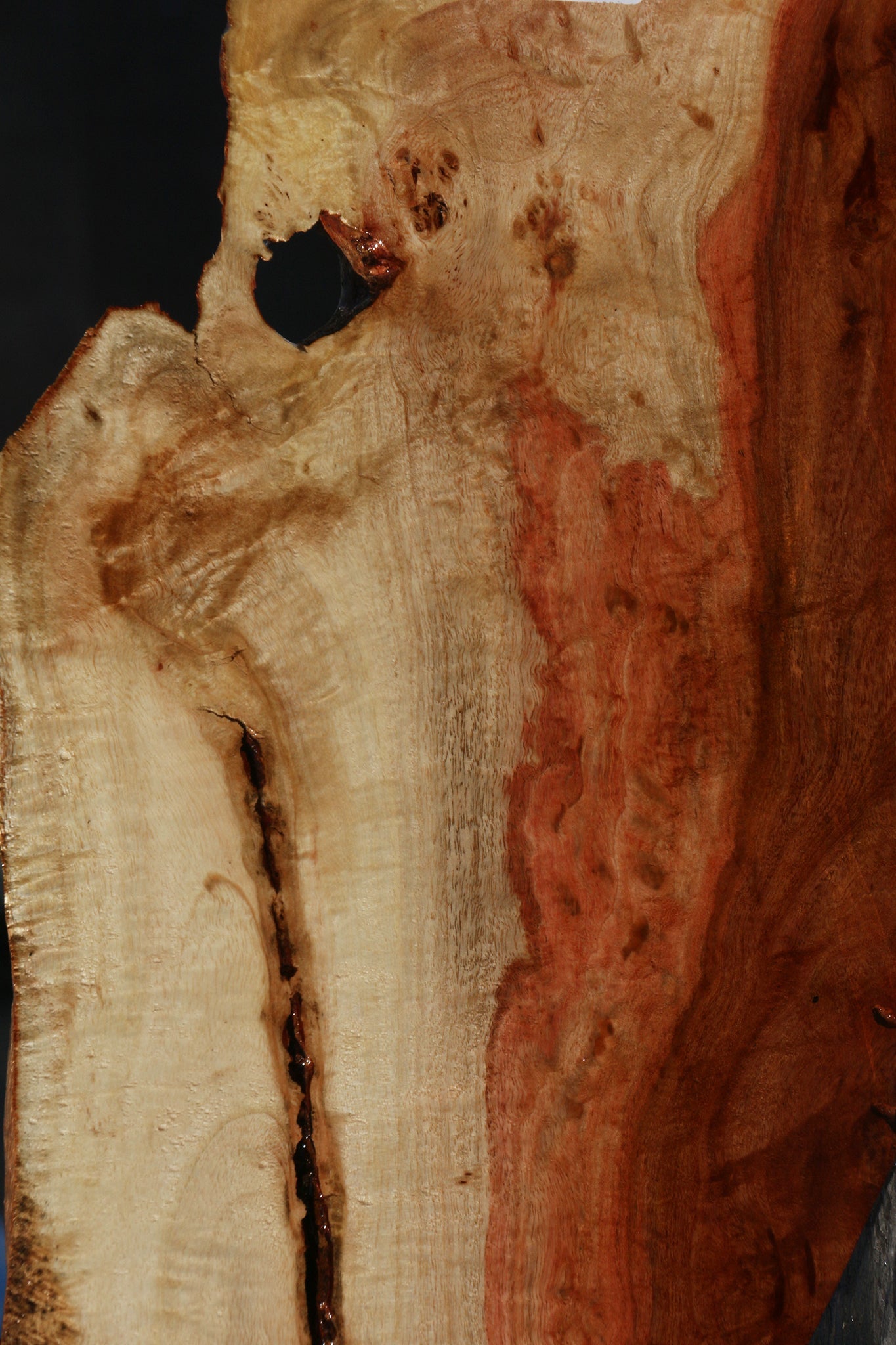 This is a colorful batch of Carob, replete with all of the easy woodworking characteristics you love when working with wood, including a high, smooth polish, easy workability, and easy sanding. The wood was cut in August of 2024. It is surfaced on two sides, kiln dried, and ready to use. An occasional check, live edge, soft spalted area, or rough corner edge may be present. Boards over 24" may have 1/16" to 1/8" bow or twist. Take advantage of this first-time lumber offer of sensational Carob wood! This piece has checks, splits, and a void. Please see pictures for details.