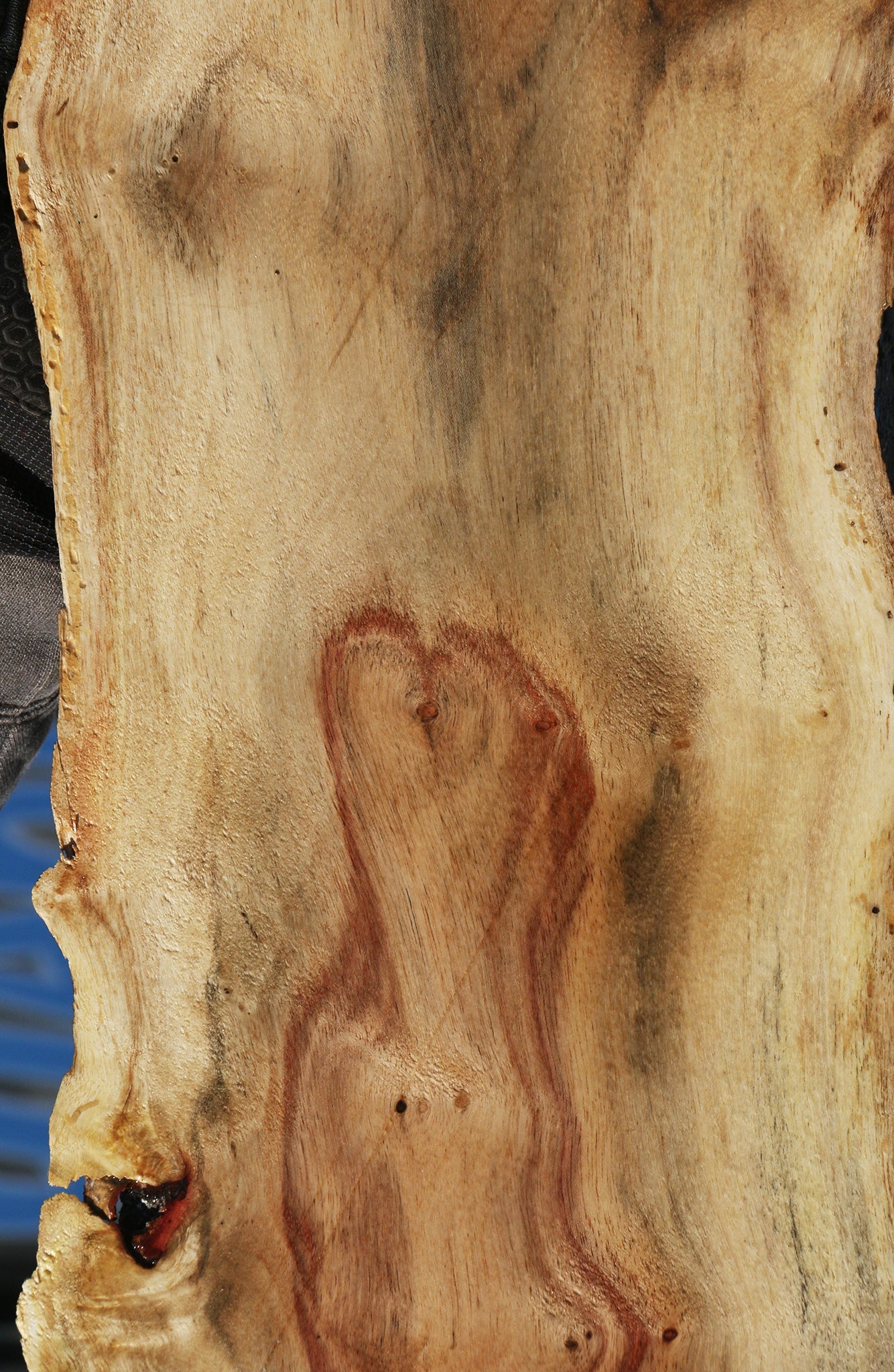 This is a colorful batch of Carob, replete with all of the easy woodworking characteristics you love when working with wood, including a high, smooth polish, easy workability, and easy sanding. The wood was cut in August of 2024. It is surfaced on two sides, kiln dried, and ready to use. An occasional check, live edge, soft spalted area, or rough corner edge may be present. Boards over 24" may have 1/16" to 1/8" bow or twist. Take advantage of this first-time lumber offer of sensational Carob wood! This piece has bug holes and inclusions. Please see pictures for details.
