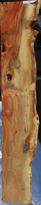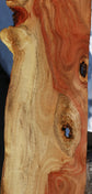 This is a colorful batch of Carob, replete with all of the easy woodworking characteristics you love when working with wood, including a high, smooth polish, easy workability, and easy sanding. The wood was cut in August of 2024. It is surfaced on two sides, kiln dried, and ready to use. An occasional check, live edge, soft spalted area, or rough corner edge may be present. Boards over 24" may have 1/16" to 1/8" bow or twist. Take advantage of this first-time lumber offer of sensational Carob wood! This piece has checks, voids, inclusions. Please see pictures for details.