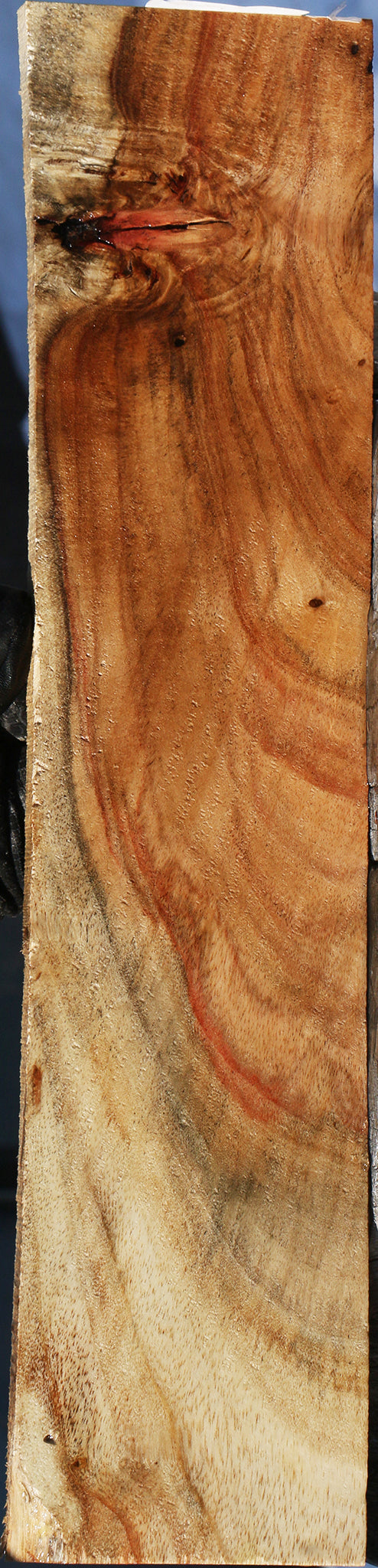 This is a colorful batch of Carob, replete with all of the easy woodworking characteristics you love when working with wood, including a high, smooth polish, easy workability, and easy sanding. The wood was cut in August of 2024. It is surfaced on two sides, kiln dried, and ready to use. An occasional check, live edge, soft spalted area, or rough corner edge may be present. Boards over 24" may have 1/16" to 1/8" bow or twist. Take advantage of this first-time lumber offer of sensational Carob wood! This piece has inclusions. Please see pictures for details.