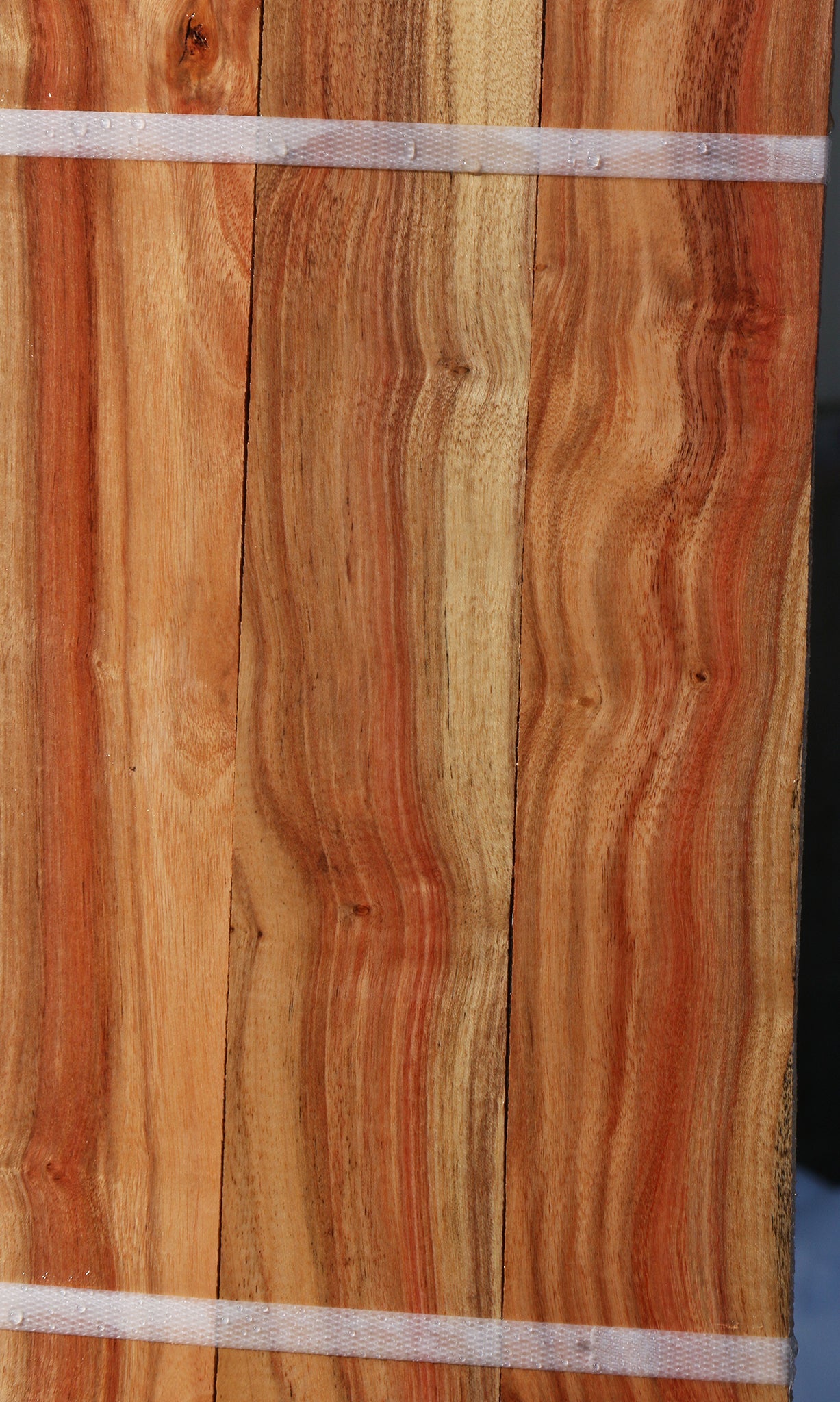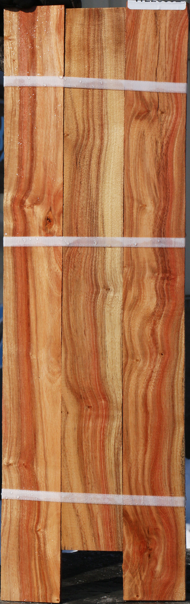 This is a colorful batch of Carob, replete with all of the easy woodworking characteristics you love when working with wood, including a high, smooth polish, easy workability, and easy sanding. The wood was cut in August of 2024. It is surfaced on two sides, kiln dried, and ready to use. An occasional check, live edge, soft spalted area, or rough corner edge may be present. Boards over 24" may have 1/16" to 1/8" bow or twist. Take advantage of this first-time lumber offer of sensational Carob wood! This is a 3-piece set. The measurements above are for the shipping size. Please note the individual measurements. Piece 1 measures 27" x 2-7/8" x 3/8". Piece 2 measures 24-9/16" x 2-3/4" x 3/8". Piece 3 measures 27-1/16" x 2-7/8" x 3/8". One or more of the pieces may have inclusions.