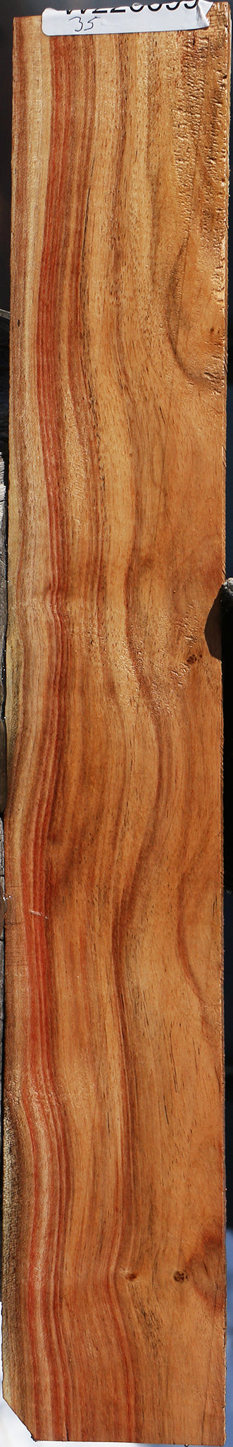 This is a colorful batch of Carob, replete with all of the easy woodworking characteristics you love when working with wood, including a high, smooth polish, easy workability, and easy sanding. The wood was cut in August of 2024. It is surfaced on two sides, kiln dried, and ready to use. An occasional check, live edge, soft spalted area, or rough corner edge may be present. Boards over 24" may have 1/16" to 1/8" bow or twist. Take advantage of this first-time lumber offer of sensational Carob wood! This piece has pin holes. Please see pictures for details.