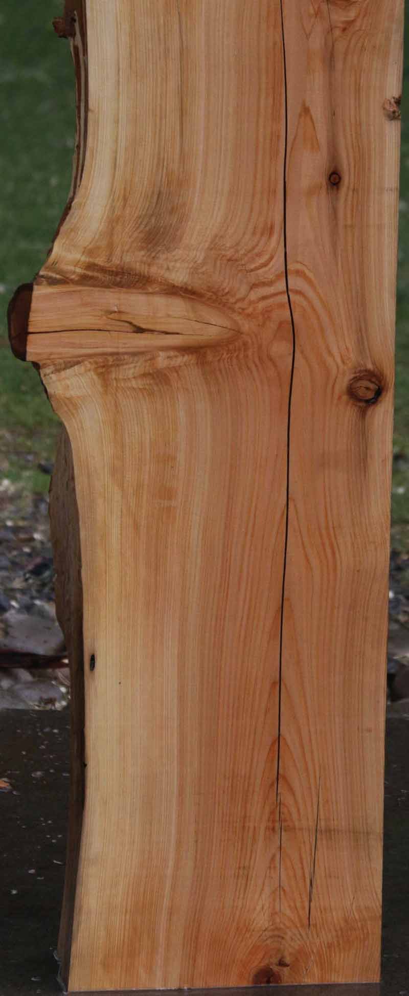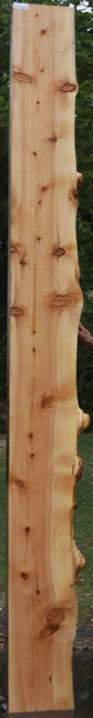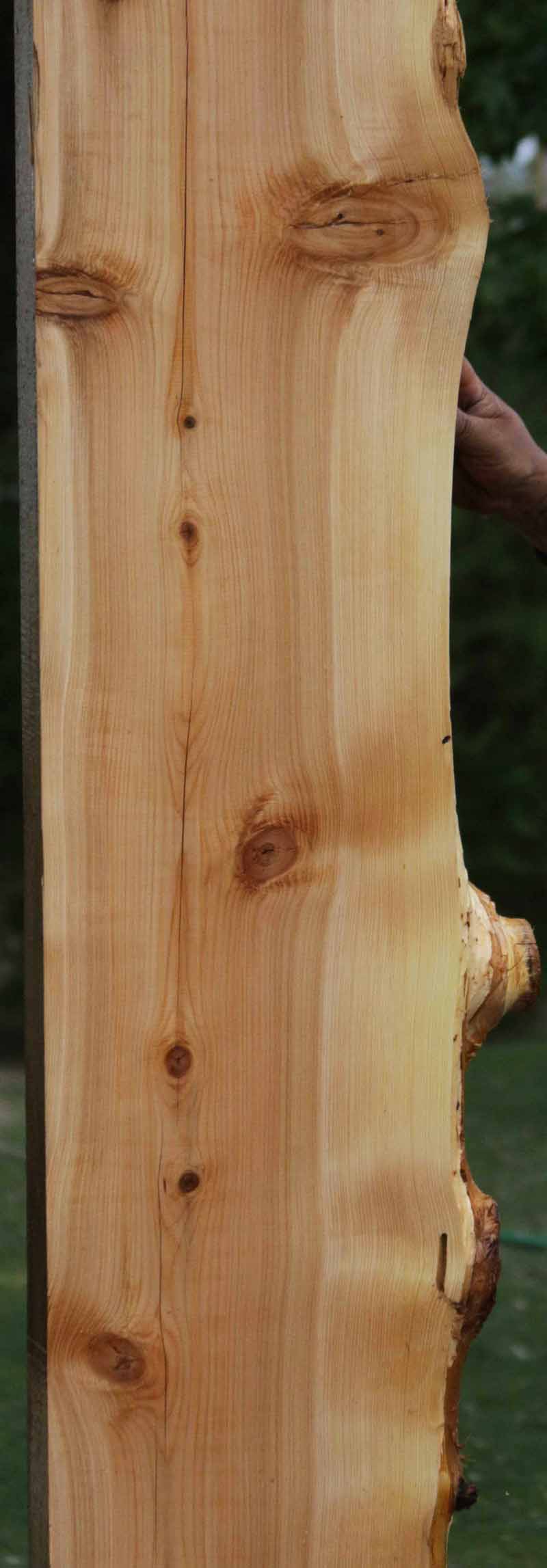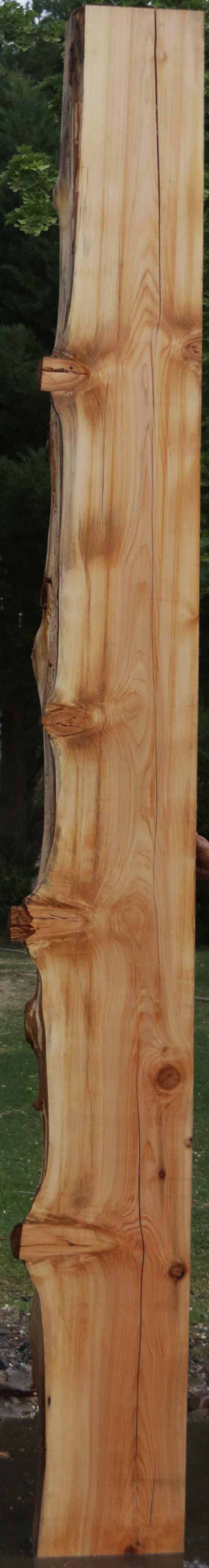 The title says a lot, but this stunning Incense Cedar mantel is so unique and speaks volumes for itself! This piece has some exciting bug trails on the live edge. It has been vacuumed kiln dried and heat treated as well as sterilized. There are lots of knots present and several long checks, however this wood is structurally sound.