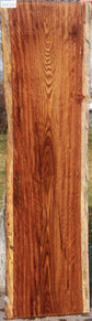 A wide range of vivid contrasting colors and figure are found in this special lumber. It is kiln dried, surfaced on two sides, and ready to use! Very few, if any defects are present in this stock. An occasional, minor surface check may be present. Boards with live edges contain checks in the edge grain. Boards longer than 3 ft. may have a slight bow or twist up to 1/8". Look forward to the high natural polish and beautiful luster this species produces. This piece has bug holes, pin holes, and edge checks. Please see pictures for details.