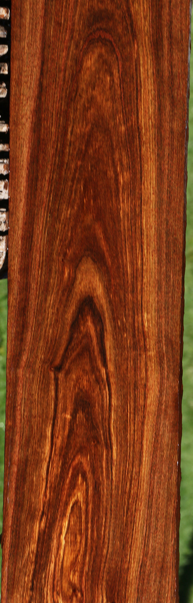 A wide range of vivid contrasting colors and figure are found in this special lumber. It is kiln dried, surfaced on two sides, and ready to use! Very few, if any, defects are present in this stock. An occasional minor surface or end check may be present. Boards longer than 3 ft. may have a slight bow or twist up to 1/8". Look forward to the high natural polish and beautiful luster this species produces. This piece has inclusions and pin holes. Please see pictures for details.