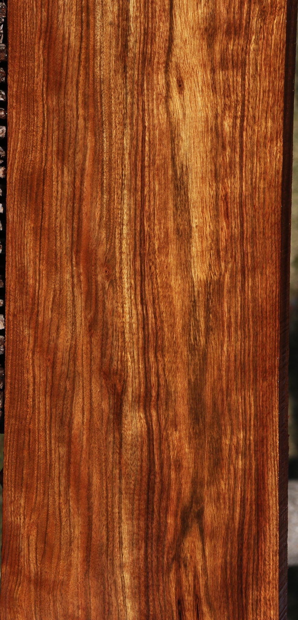 A wide range of vivid contrasting colors and figure are found in this special lumber. It is kiln dried, surfaced on two sides, and ready to use! Very few, if any, defects are present in this stock. An occasional minor surface or end check may be present. Boards longer than 3 ft. may have a slight bow or twist up to 1/8". Look forward to the high natural polish and beautiful luster this species produces. This piece has checks. Please see pictures for details.