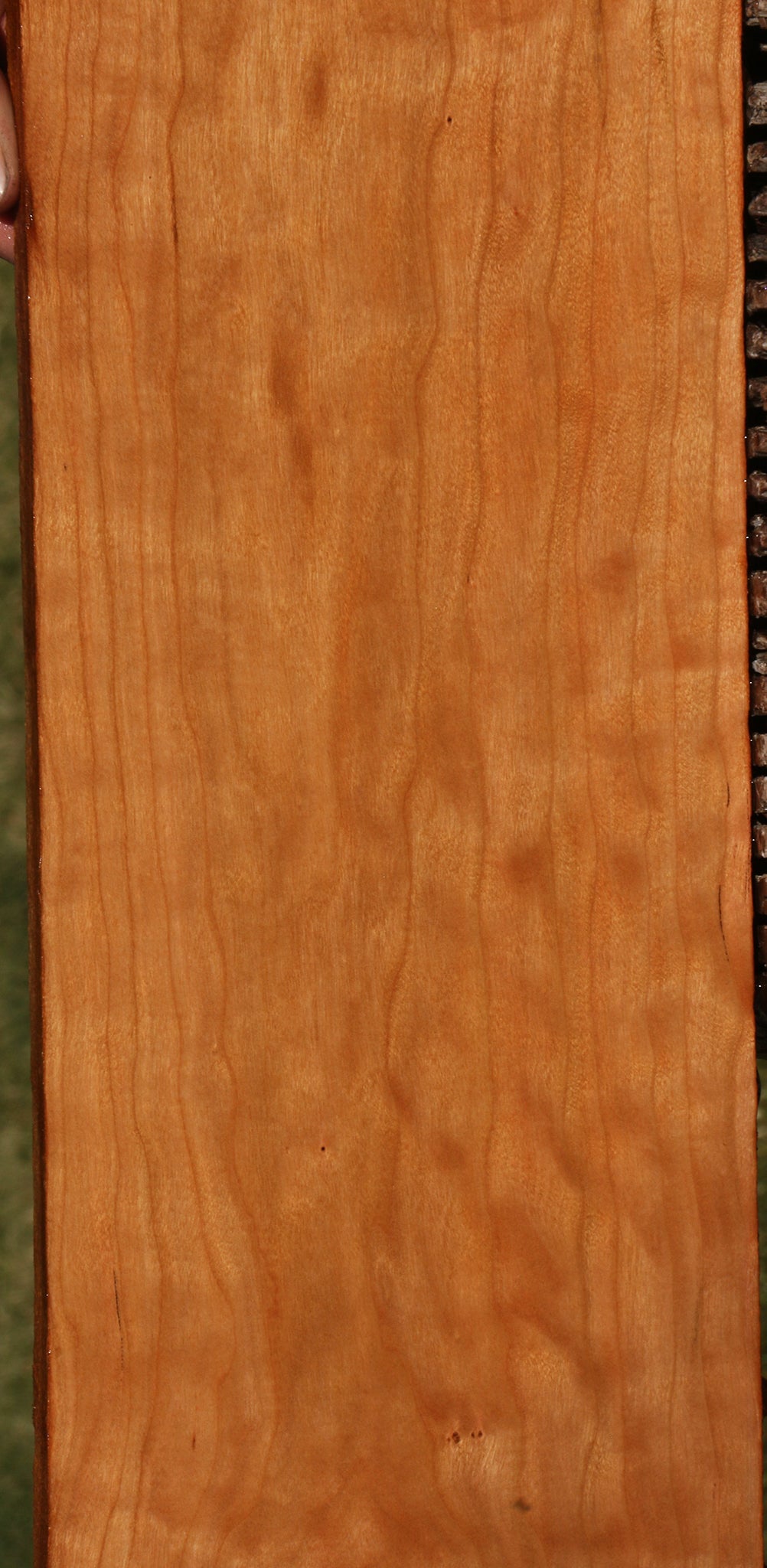 This high quality curly Cherry lumber has been kiln dried and surfaced on two sides. It is nice clean material, making it ideal for your woodworking projects. Lumber over 3 ft. may have a slight 1/16" to 1/8" bow or twist but generally this lumber is flat. There may be gum pockets, a minor check, minor planer skip, or occasional bug holes present on some pieces. Select this wood for outstanding workability and beauty.