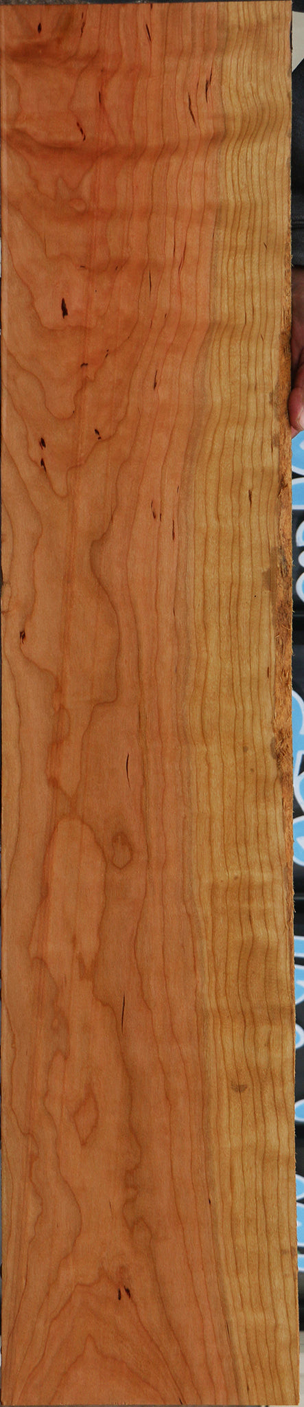 This high quality curly Cherry lumber has been kiln dried and surfaced on two sides. It is nice clean material, making it ideal for your woodworking projects. Lumber over 3 ft. may have a slight 1/16" to 1/8" bow or twist but generally this lumber is flat. There may be gum pockets, a minor check, minor planer skip, or an occasional bug hole present on some pieces. Select this wood for outstanding workability and beauty. This piece has a partial rough edge. Please see pictures for details.