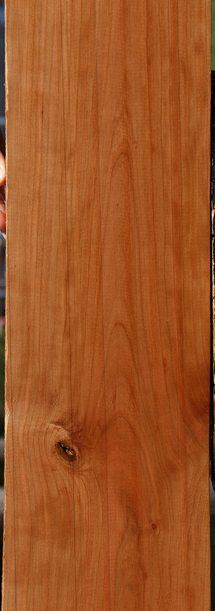 This high quality Cherry lumber has been kiln dried and surfaced on two sides. It is nice clean material, making it ideal for your woodworking projects. Lumber over 3 ft. may have a slight 1/16" to 1/8" bow or twist but generally this lumber is flat. There may be gum pockets (small black spots in the grain), a minor check, minor planer skip, or an occasional bug hole present on some pieces. Select this wood for outstanding workability and beauty. This piece has knots and pin knots. Please see pictures for details.