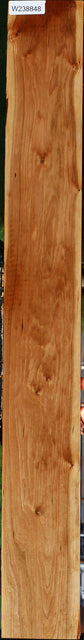 This high quality Cherry lumber has been kiln dried and surfaced on two sides. It is nice clean material, making it ideal for your woodworking projects. Lumber over 3 ft. may have a slight 1/16" to 1/8" bow or twist but generally this lumber is flat. There may be gum pockets (small black spots in the grain), a minor check, minor planer skip, or an occasional bug hole present on some pieces. Select this wood for outstanding workability and beauty. This piece has pin knots. Please see pictures for details.