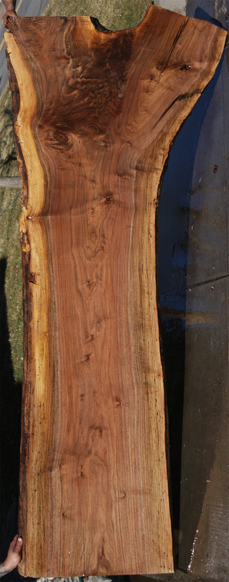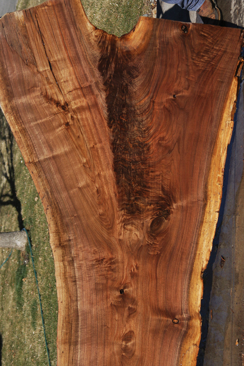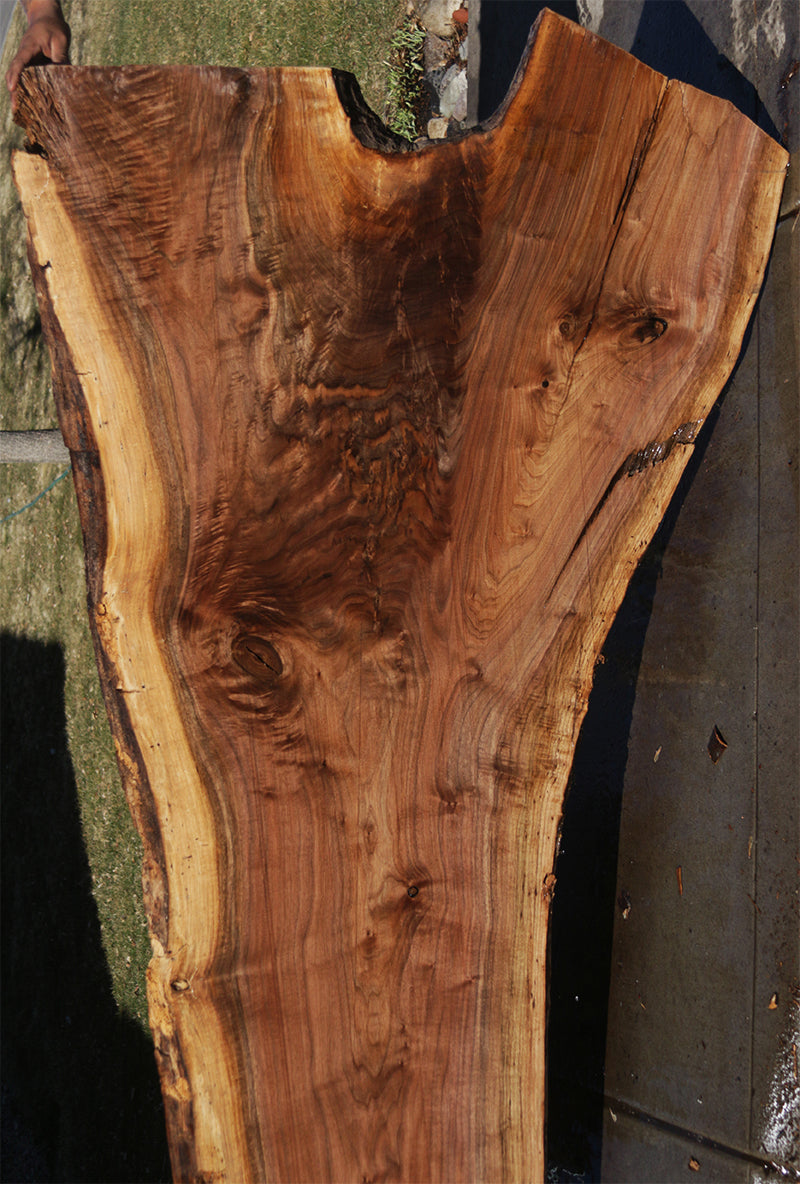 This outstanding Walnut wood slab has incredible color and figure! Some of our Walnut slabs may have a slight 1/16” to 3/16” bow or cup but most are perfectly flat....