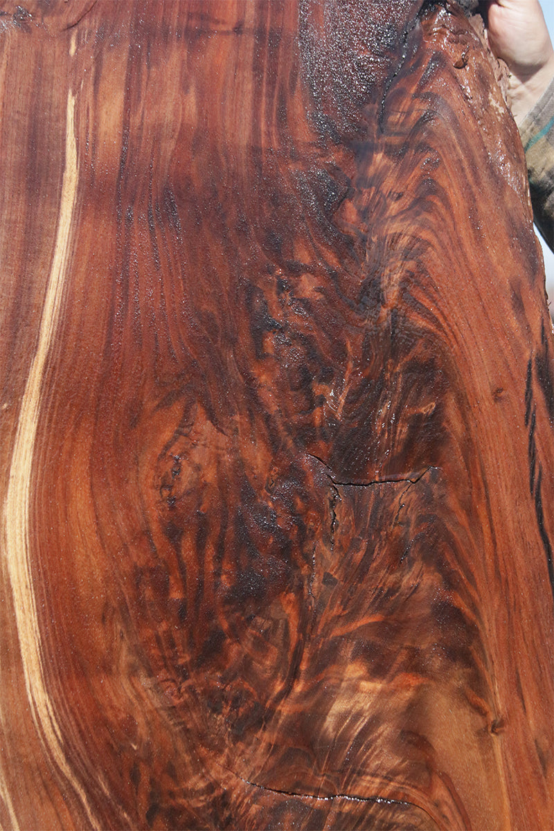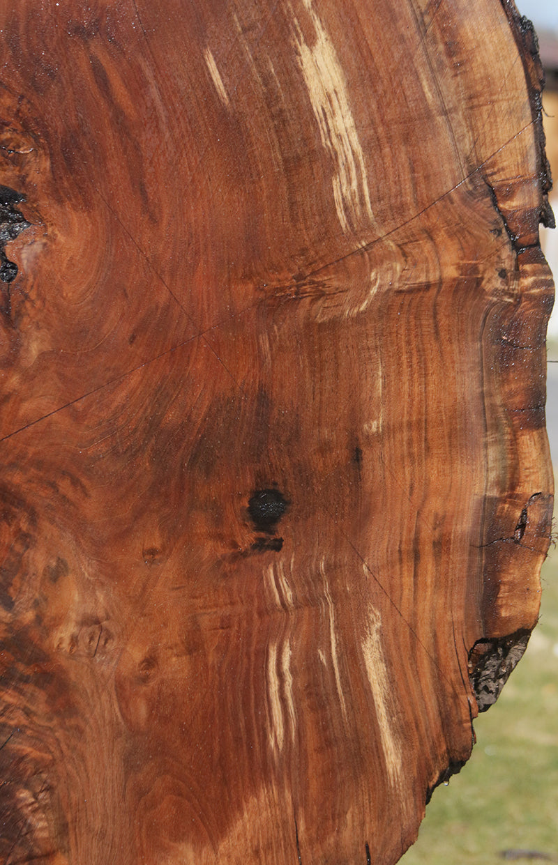 This outstanding Walnut wood slab has incredible color and figure! Some of our Walnut slabs may have a slight 1/16” to 3/16” bow or cup but most are perfectly flat. This has been vacuum kiln dried and surfaced on both sides. This wood is ideal for fine woodworking projects. Live edges have some checks and cracks. Please see photos for a detailed look or inquire if you have questions. This unique hardwood slab is perfect for your next build! Natural checks in any crotch figure and natural defects are normal in this species. (This piece requires freight shipping due to its size. This item does not qualify for free shipping.)