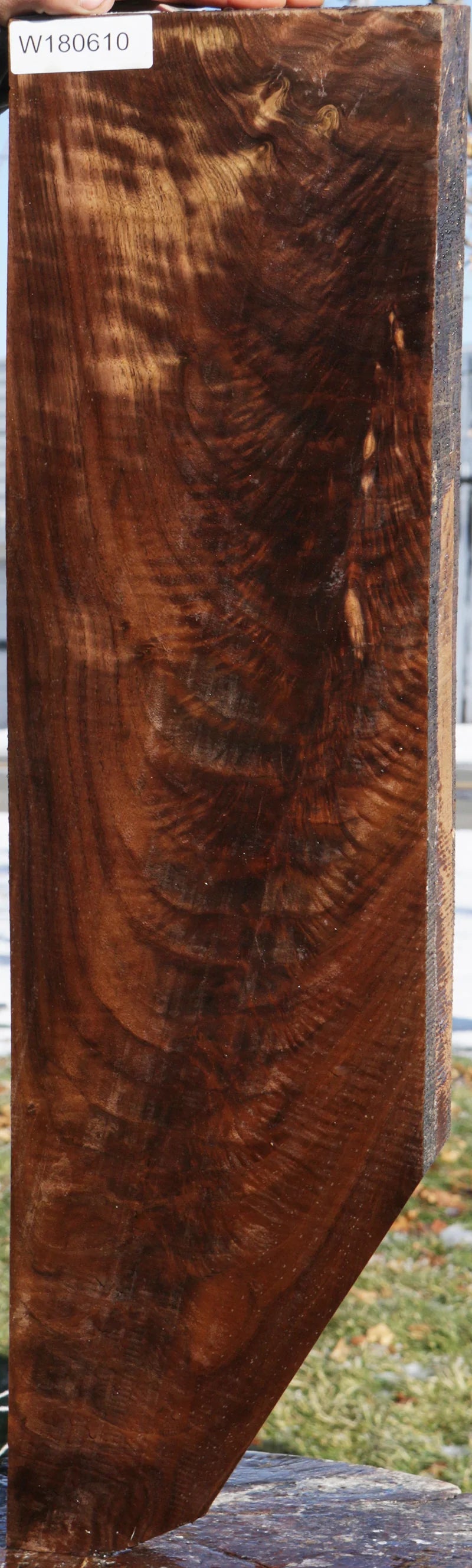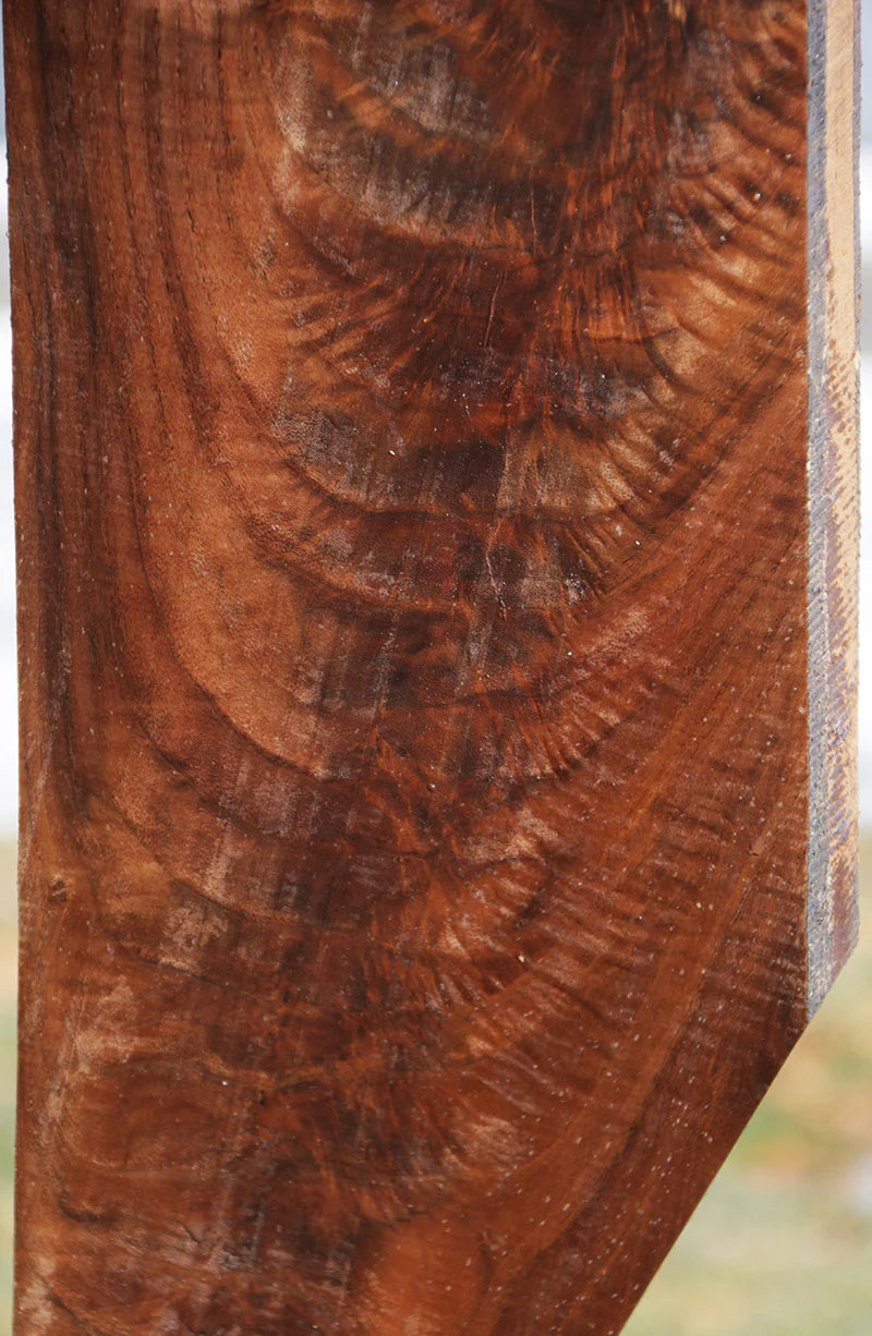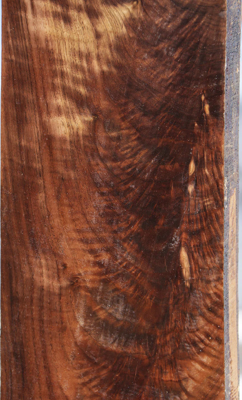 This piece has been air dried, surfaced on two sides. This piece is unseasoned. It has not been dried. It needs to season for 3 years minimum if used for a rifle stock. If turning this wood, it would be ideal for twice turning. Checking usually develops in the figure in highly figured Walnut. This piece will need to be slowly dried 3-4 years. It is sold AS IS no returns.