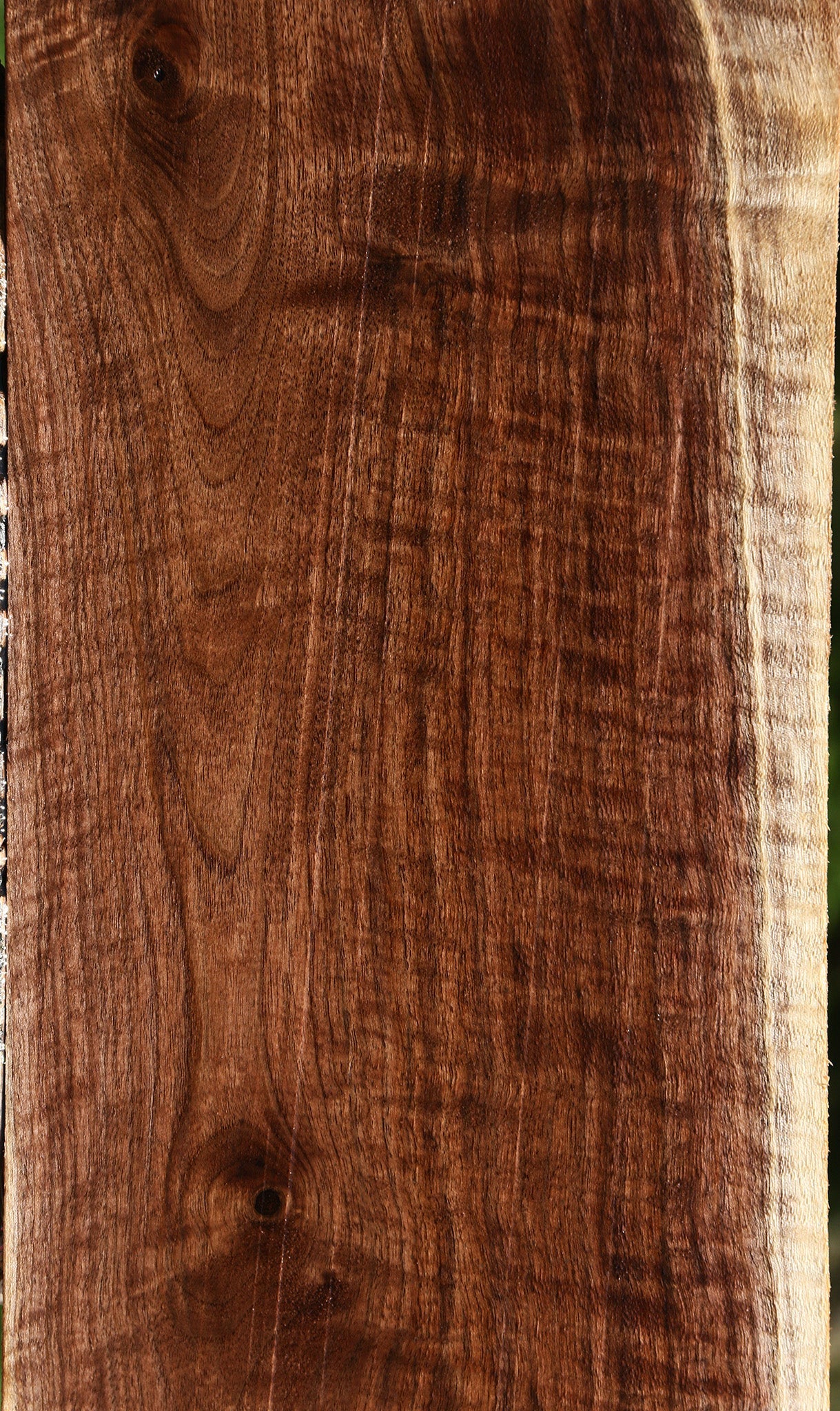 This outstanding Claro Walnut lumber has a range of great color and figure; each piece is completely unique. Some boards may have a slight 1/16” to 1/8” bow, twist, or cup but most are perfectly flat. A minor surface/end check or inclusion may be present. The wood has been kiln dried, surfaced on two sides, and is ready for use. Claro Walnut is one of our most popular hardwoods for fine woodworking projects! This piece has checks, inclusions, knots, and a partial rough edge. Please see pictures for details.