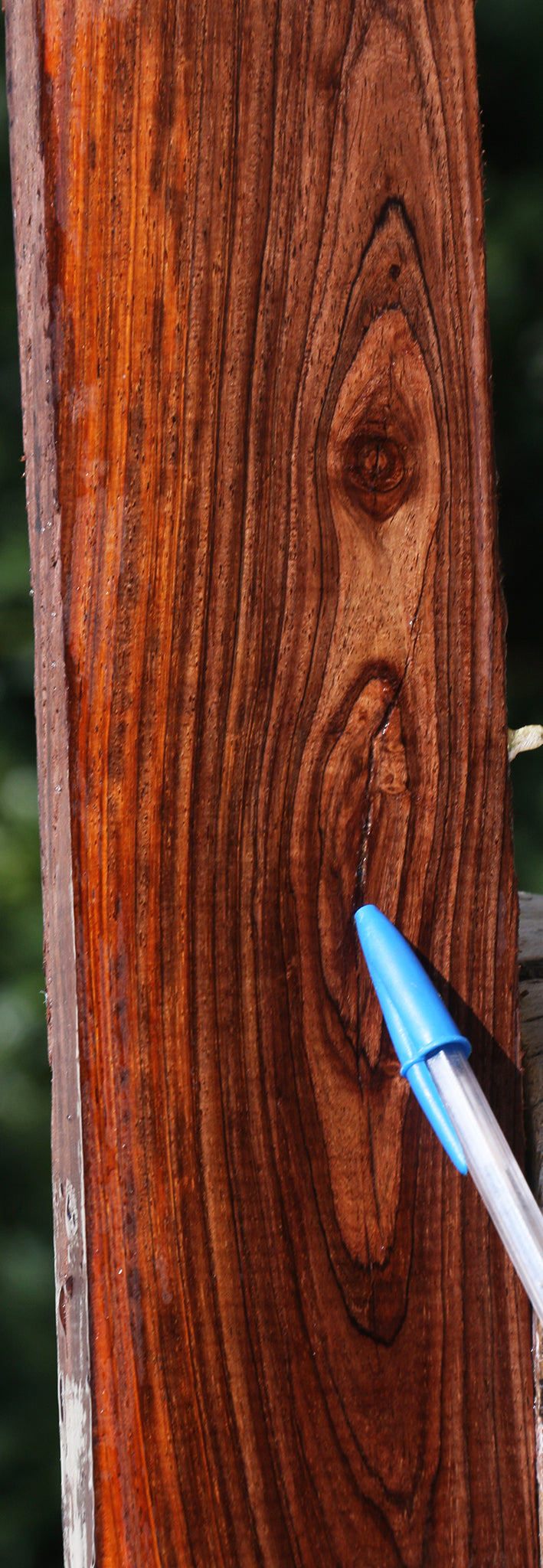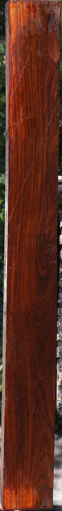 The rich red, orange, and violet tones of this Cocobolo lumber make this a fantastic choice for any woodworking project. This is clean, high quality, kiln dried stock that is ready to use. 1/16" to 1/8" bow/twist may be present in boards over 36" long. A minor check or pin hole may be present. Lighter colors will darken with age. Cocobolo is exceptional for fine woodworking. This piece has knots, checks, and an end split. Please see pictures for details.