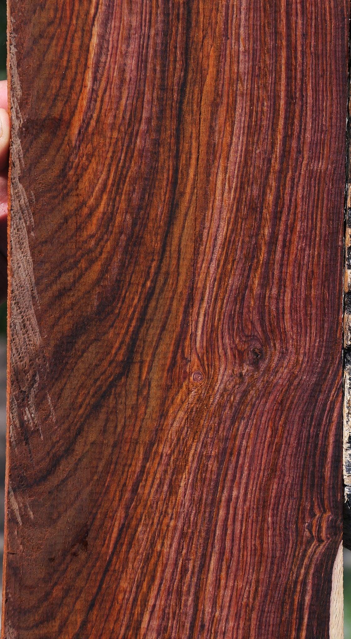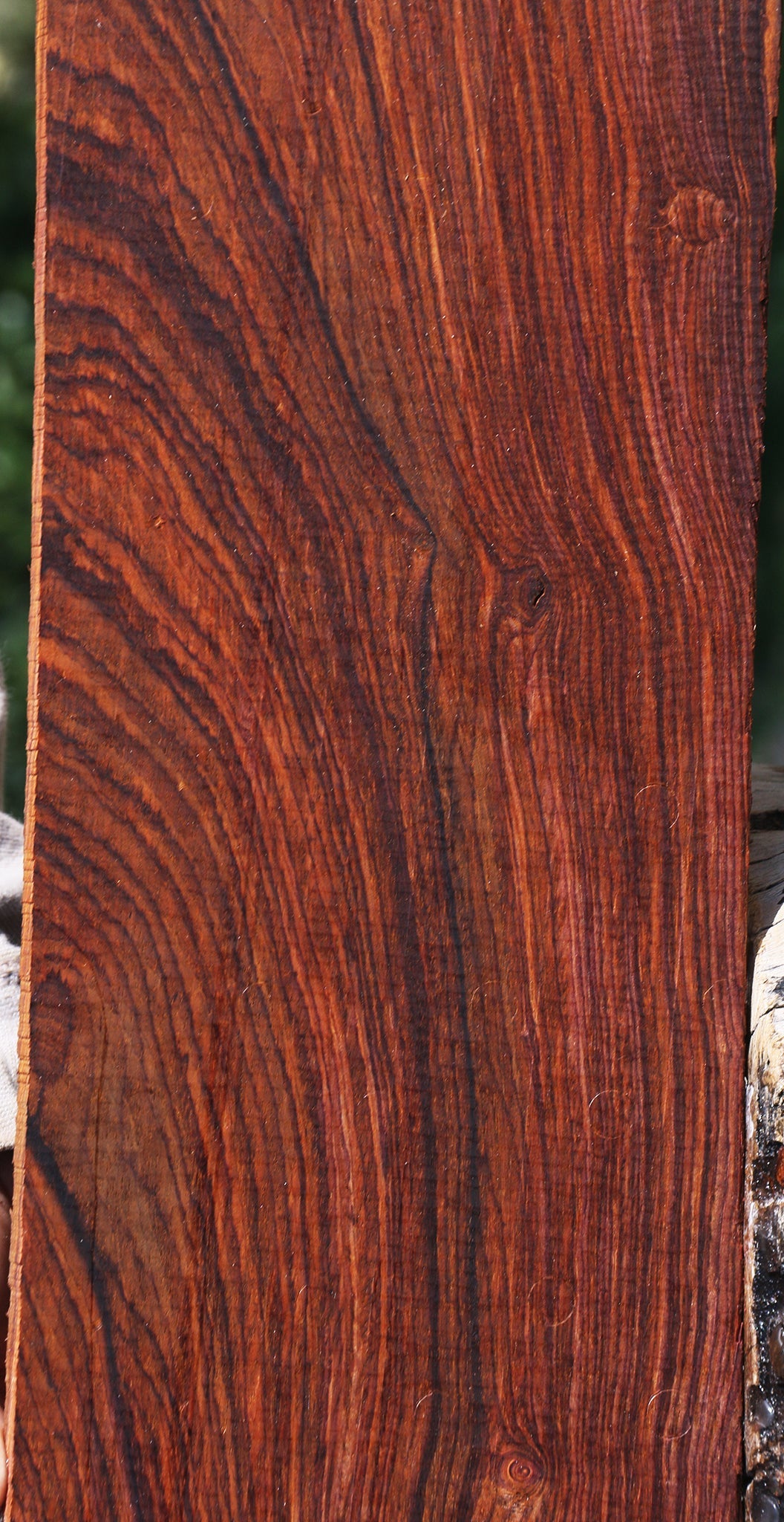 The rich red, orange, and violet tones of this Cocobolo lumber make this a fantastic choice for any woodworking project. This is clean, high quality, kiln dried stock that is ready to use. 1/16" to 1/8" bow/twist may be present in boards over 36" long. A minor check or pin hole may be present. Lighter colors will darken with age. Cocobolo is exceptional for fine woodworking. This piece has checks. Please see pictures for details.