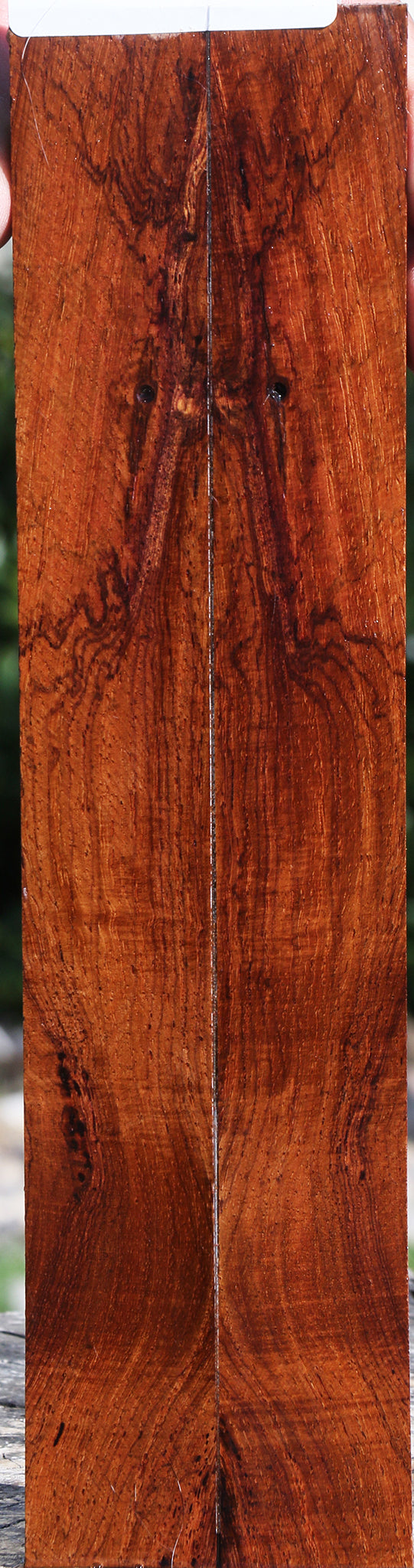 The rich red, orange, and violet tones of this Cocobolo lumber make this a fantastic choice for any woodworking project. This is clean, high quality, kiln dried stock that is ready to use. 1/16" to 1/8" bow/twist may be present in boards over 36" long. A minor check or pin hole may be present. Lighter colors will darken with age. Cocobolo is exceptional for fine woodworking. This piece has bug holes. Please see pictures for details.