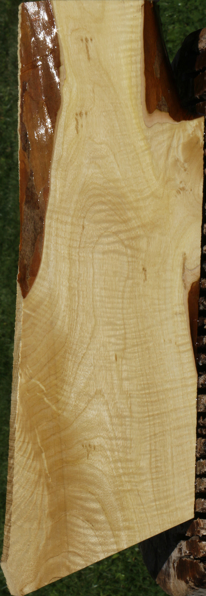 This outstanding Crepe Myrtle has intense fiddleback in nearly every board! It has been kiln dried and surfaced on two sides. An occasional check may be present in live edge boards. Crepe Myrtle is similar in color to Maple and contains great depth and luster. A twist/bow of 1/16" to 1/8" may be present in boards over 36". This beautiful hardwood will reward you with 3D figured projects! This piece has inclusions. Please see pictures for details.