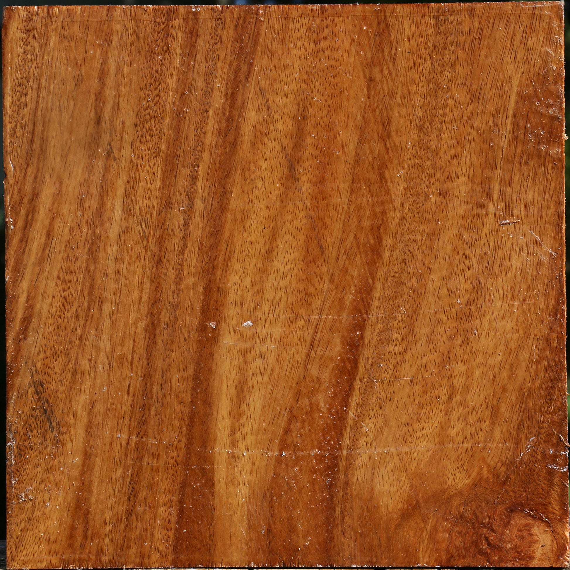 Red Cumaru is an incredibly dense hardwood that turns well with sharp tools and takes a high polish. Since it has a high oil content, it is somewhat difficult to glue, but the oil gives an exceptional natural finish to turned articles. This blank has air dried for 1 year and is completely wax sealed. It contains residual moisture and is ideal for the twice turning method. This wood ships to the USA only. This piece has knots. Please see pictures for details.