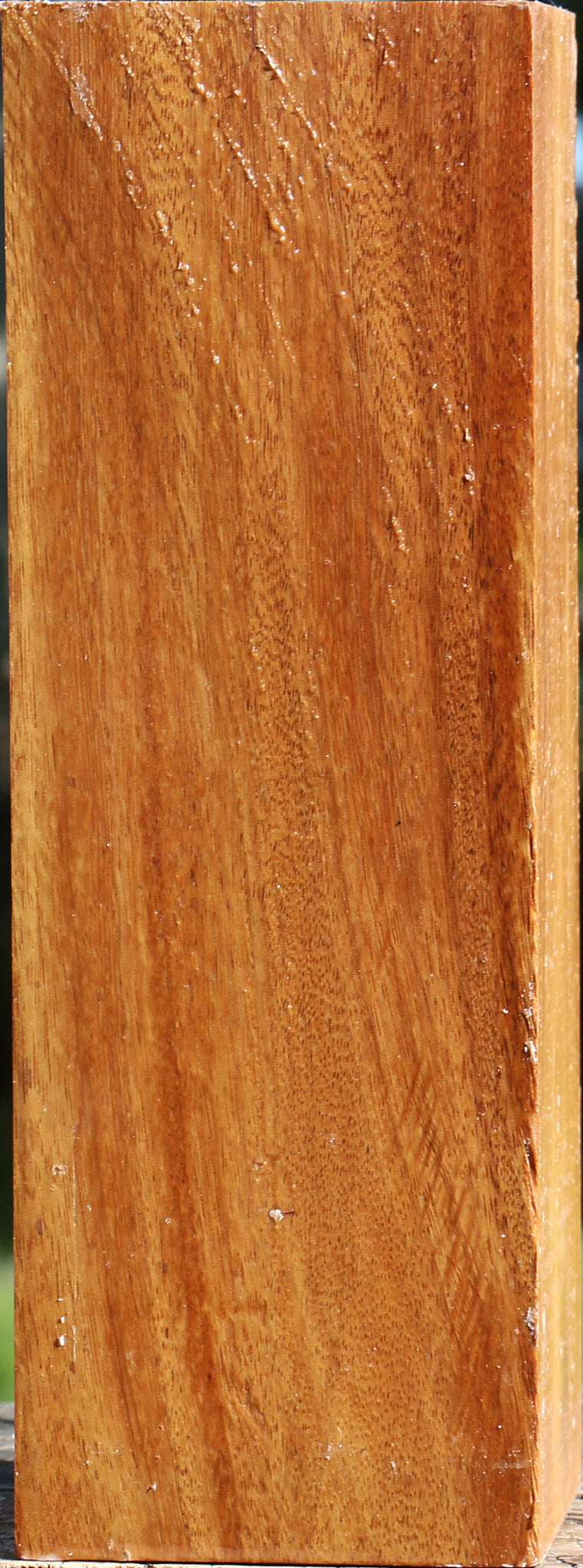 Red Cumaru is an incredibly dense hardwood that turns well with sharp tools and takes a high polish. Since it has a high oil content, it is somewhat difficult to glue, but the oil gives an exceptional natural finish to turned articles. This blank has air dried for 1 year and is completely wax sealed. It contains residual moisture and is ideal for the twice turning method. This wood ships to the USA only.