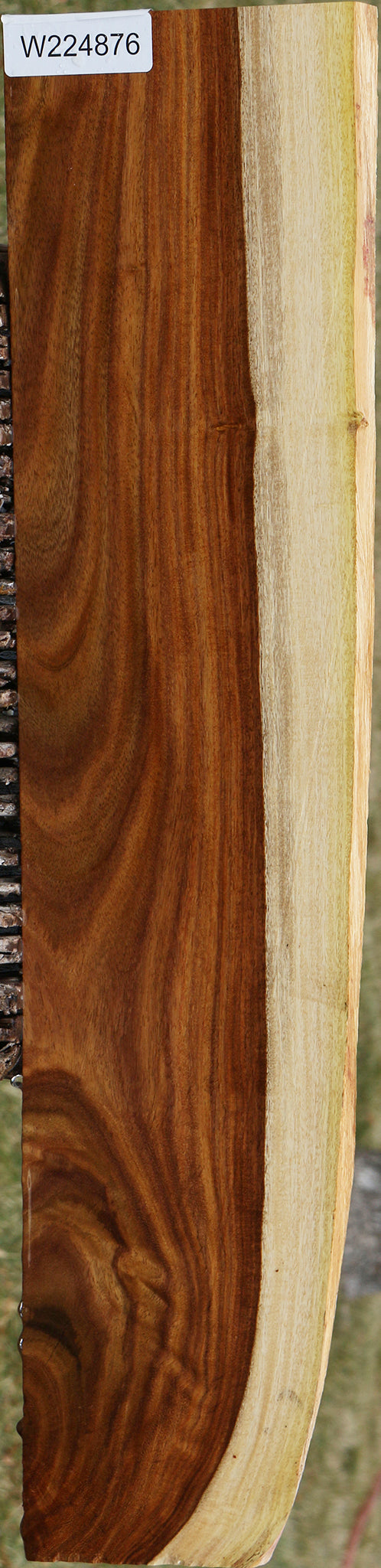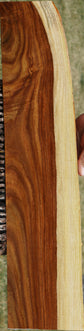 East Indian Rosewood is set apart from many woods through its range of colors. Each piece is unique, with any combination of black, violet, brown, purple, olive green, and blue undertones. Rosewoods take an exceptionally high polish and this species is no exception! The oily nature of the wood contributes to the high natural polish. This species is ideal for all woodworkers from beginner to expert. A minor bow up to 1/8" may be present on boards over 3 ft. in length. Live edge pieces may have checks in the sapwood. Rustic boards have many checks. Kiln dried and surfaced on two sides, this wood is ready for use. It cannot ship outside of the USA. This piece has checks. Please see pictures for details.