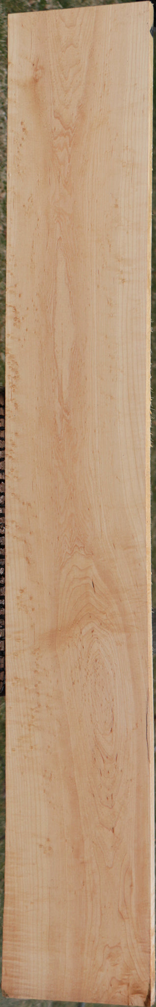 This exceptional quality Hard Maple lumber has been kiln dried and carefully surfaced on two sides. It has beautiful birdseyes with iridescent shimmer. Many of these boards are instrument grade. Boards over 36" may have a slight bow or twist. Individual pictures show you exactly what you are buying, so you can select the piece that is perfect for you! This piece has a rough edge and checks. Please see pictures for details.