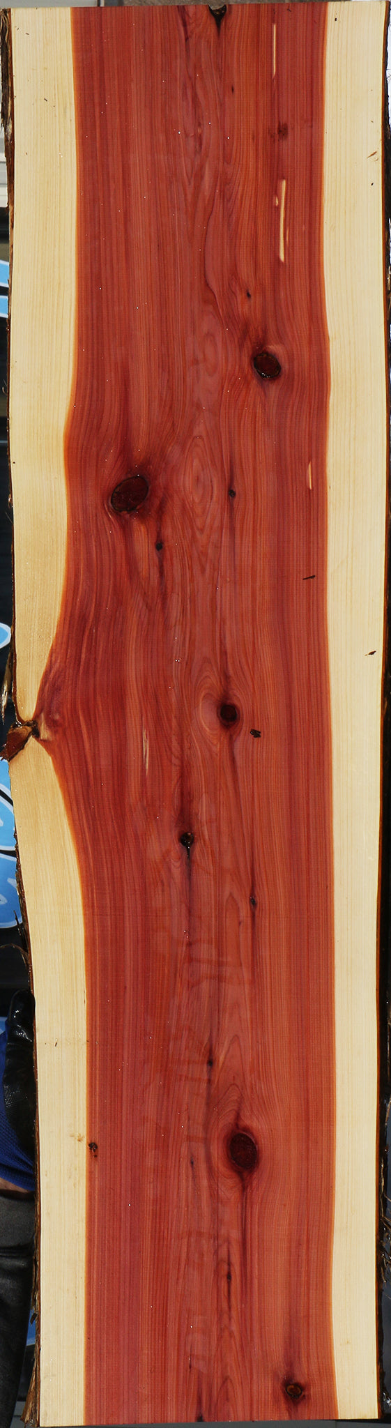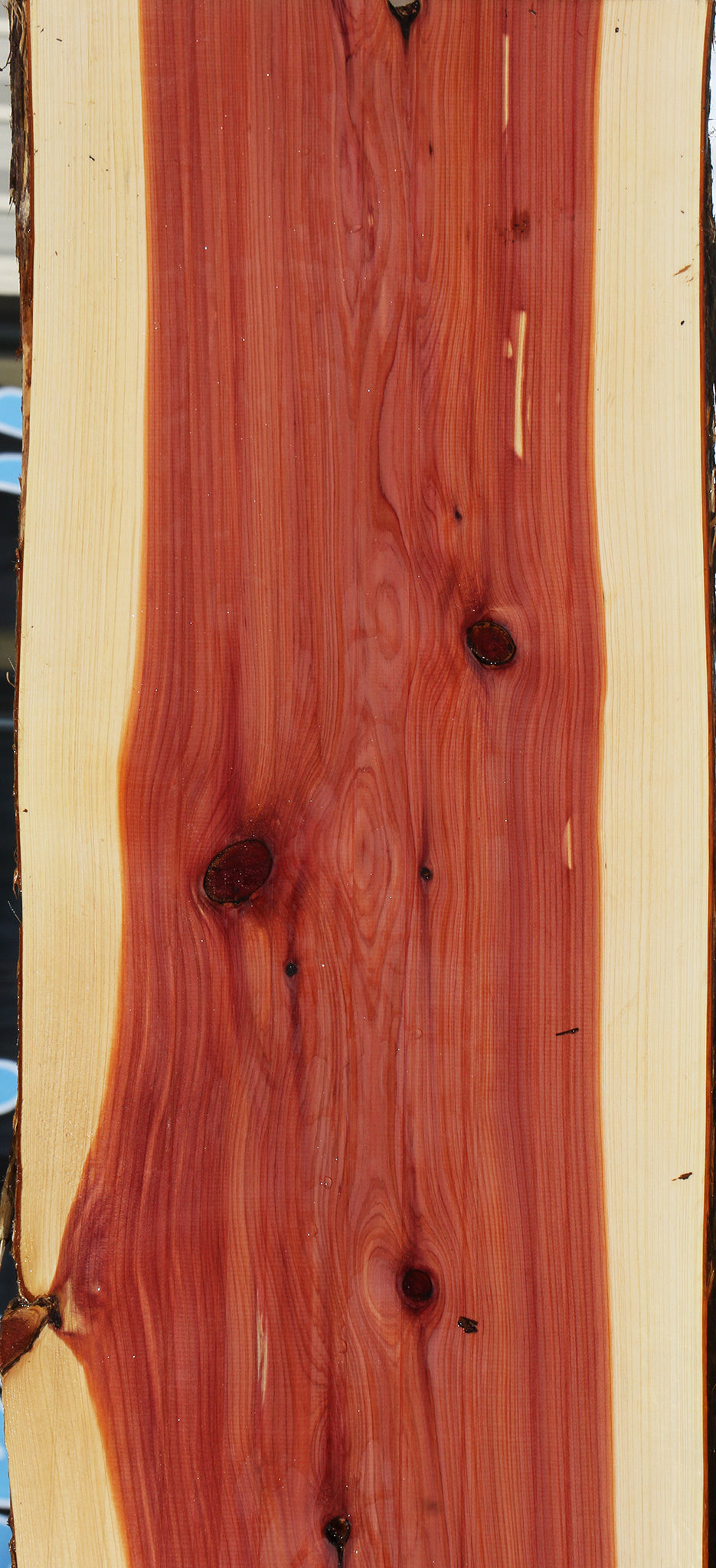 This Eastern Red Cedar is ready for your projects! It has been kiln dried and surfaced on two sides. Incorporate varying shades of beautiful color into your next woodworking project and benefit from the iconic aroma of this species. Eastern Red Cedar is easy to work with hand and power tools. Live edges with shaggy bark are present on all of the boards. A bow or twist of 1/16" to 1/8" may be present on boards over 36". Please see photos for knots, checks, and areas with bark inclusions.