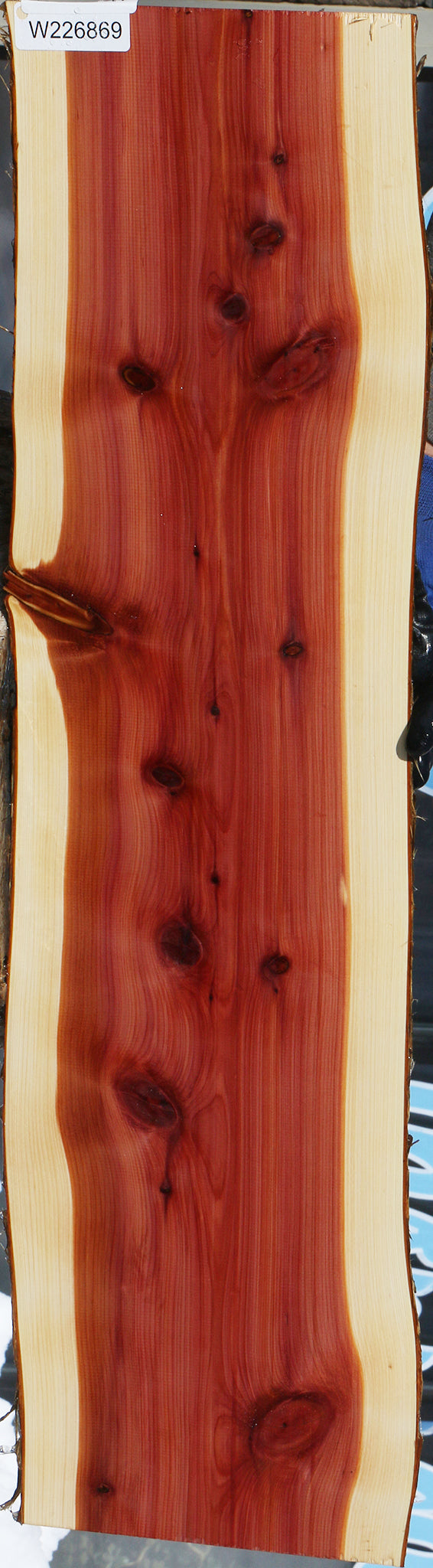 This Eastern Red Cedar is ready for your projects! It has been kiln dried and surfaced on two sides. Incorporate varying shades of beautiful color into your next woodworking project and benefit from the iconic aroma of this species. Eastern Red Cedar is easy to work with hand and power tools. Live edges with shaggy bark are present on all of the boards. A bow or twist of 1/16" to 1/8" may be present on boards over 36". Please see photos for knots, checks, and areas with bark inclusions.