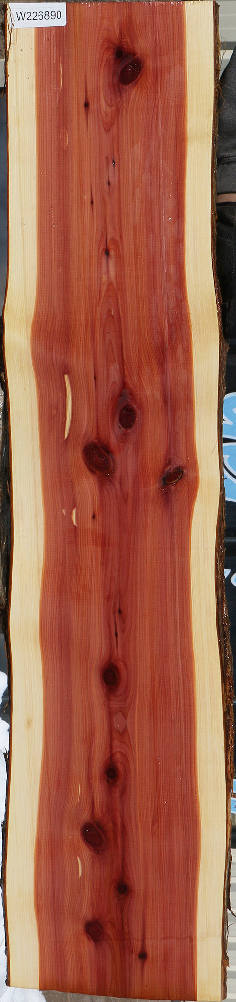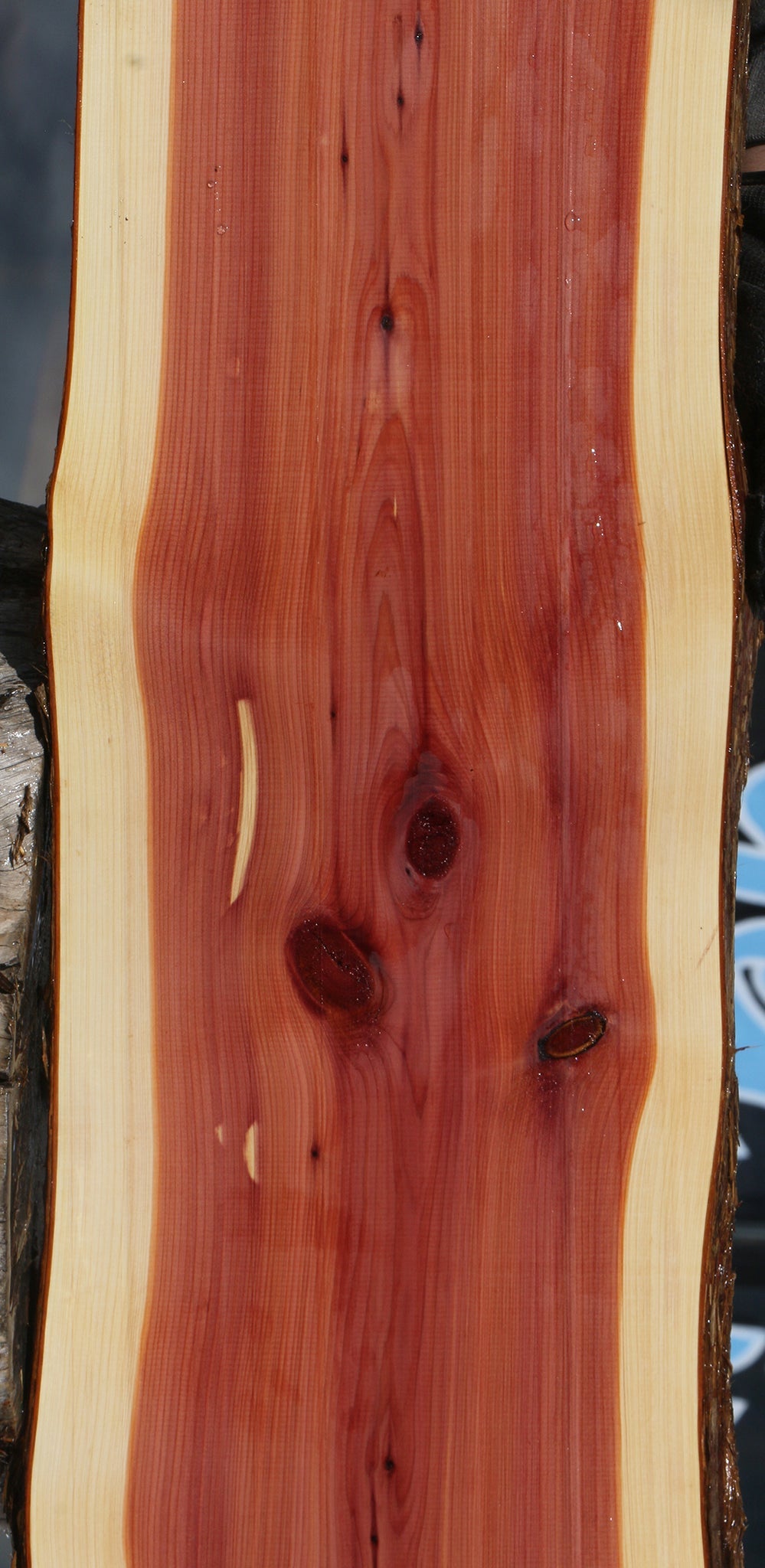 This Eastern Red Cedar is ready for your projects! It has been kiln dried and surfaced on two sides. Incorporate varying shades of beautiful color into your next woodworking project and benefit from the iconic aroma of this species. Eastern Red Cedar is easy to work with hand and power tools. Live edges with shaggy bark are present on all of the boards. A bow or twist of 1/16" to 1/8" may be present on boards over 36". Please see photos for knots, checks, and areas with bark inclusions.