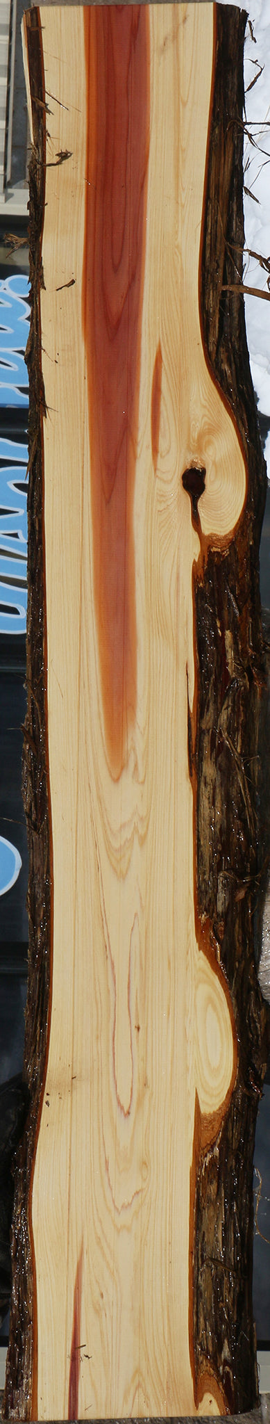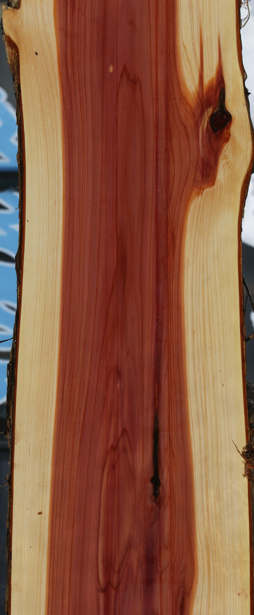This Eastern Red Cedar is ready for your projects! It has been kiln dried and surfaced on two sides. Incorporate varying shades of beautiful color into your next woodworking project and benefit from the iconic aroma of this species. Eastern Red Cedar is easy to work with hand and power tools. Live edges with shaggy bark are present on all of the boards. A bow or twist of 1/16" to 1/8" may be present on boards over 36". Please see photos for knots, checks, and areas with bark inclusions.