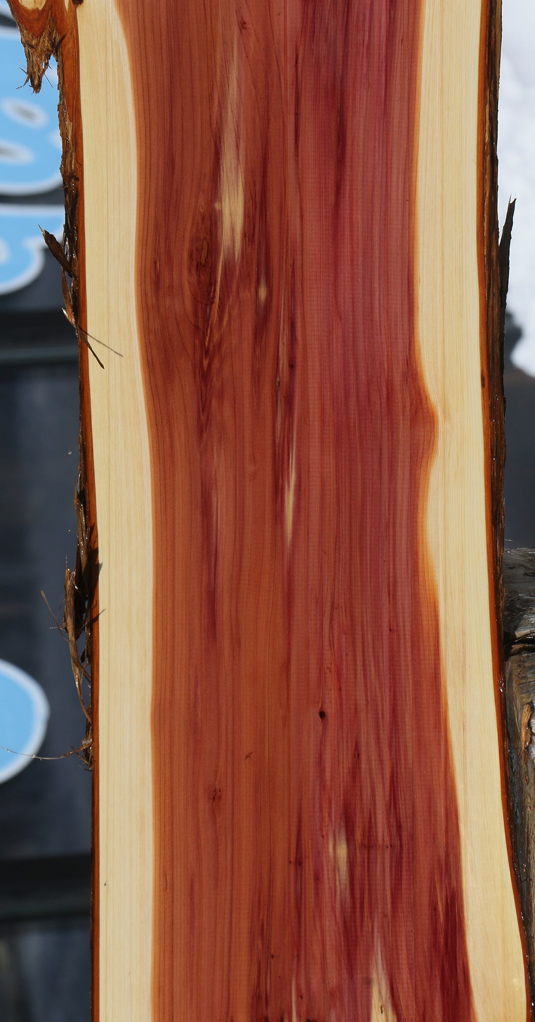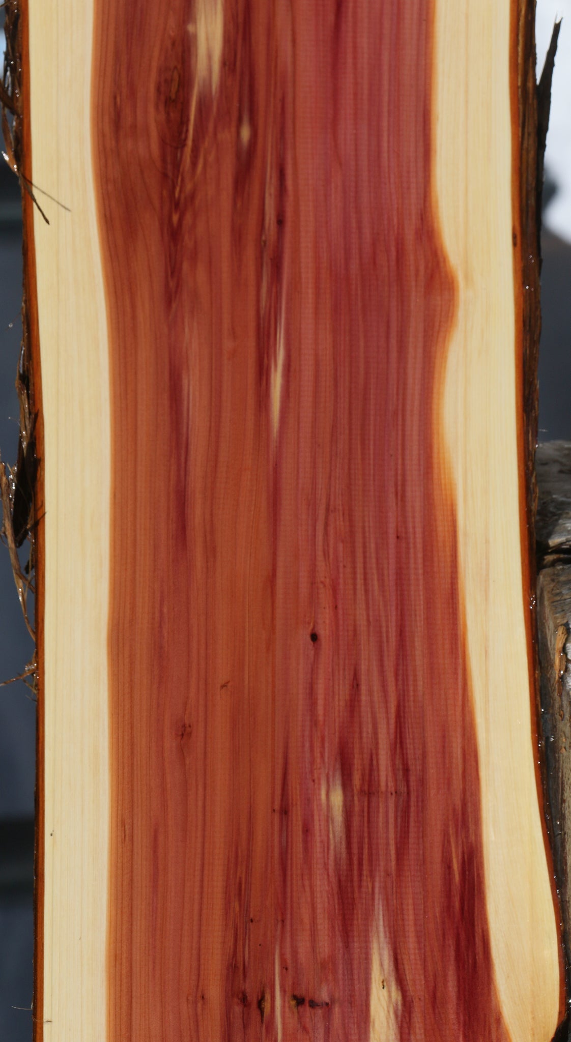 This Eastern Red Cedar is ready for your projects! It has been kiln dried and surfaced on two sides. Incorporate varying shades of beautiful color into your next woodworking project and benefit from the iconic aroma of this species. Eastern Red Cedar is easy to work with hand and power tools. Live edges with shaggy bark are present on all of the boards. A bow or twist of 1/16" to 1/8" may be present on boards over 36". Please see photos for knots, checks, and areas with bark inclusions.