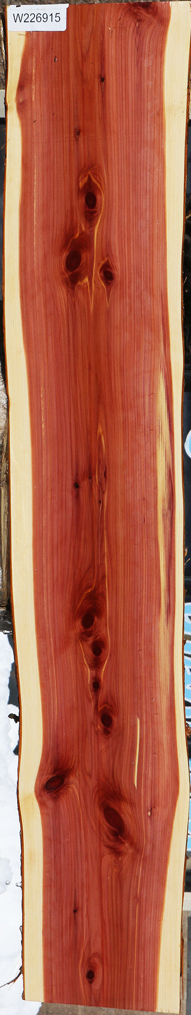 This Eastern Red Cedar is ready for your projects! It has been kiln dried and surfaced on two sides. Incorporate varying shades of beautiful color into your next woodworking project and benefit from the iconic aroma of this species. Eastern Red Cedar is easy to work with hand and power tools. Live edges with shaggy bark are present on all of the boards. A bow or twist of 1/16" to 1/8" may be present on boards over 36". Please see photos for knots, checks, and areas with bark inclusions.