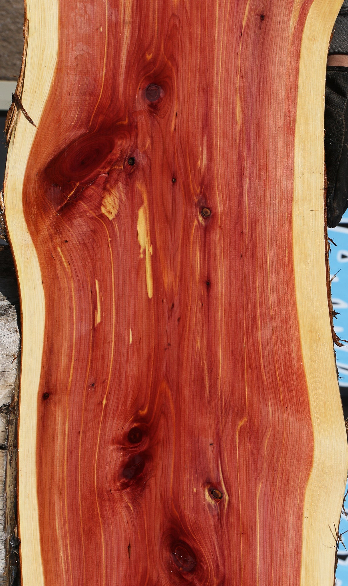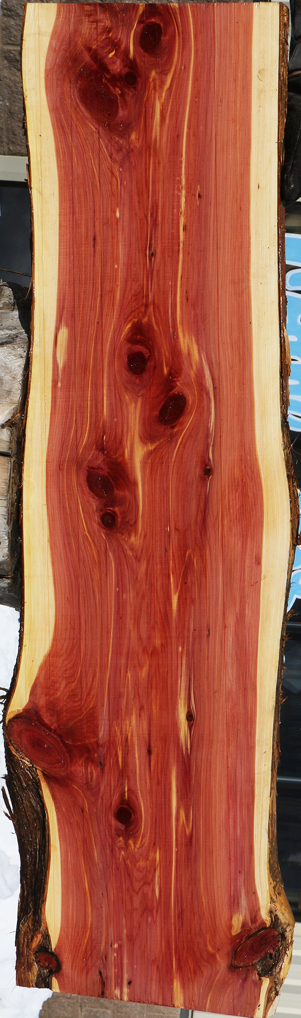 This Eastern Red Cedar is ready for your projects! It has been kiln dried and surfaced on two sides. Incorporate varying shades of beautiful color into your next woodworking project and benefit from the iconic aroma of this species. Eastern Red Cedar is easy to work with hand and power tools. Live edges with shaggy bark are present on all of the boards. A bow or twist of 1/16" to 1/8" may be present on boards over 36". Please see photos for knots, checks, and areas with bark inclusions.