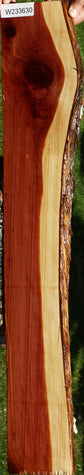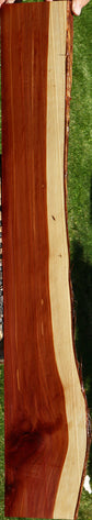 This Eastern Red Cedar is ready for your projects! It has been kiln dried and surfaced on two sides. Incorporate varying shades of beautiful color into your next woodworking project and also benefit from the iconic aroma of this species. Eastern Red Cedar is easy to work with hand and power tools. Live edges with loose shaggy bark are present on all of the boards. A bow or twist of 1/16" to 1/8" may be present on boards over 36". Please see photos for knots, checks, and areas with bark inclusions. This piece has checks and inclusions. Please see pictures for details.